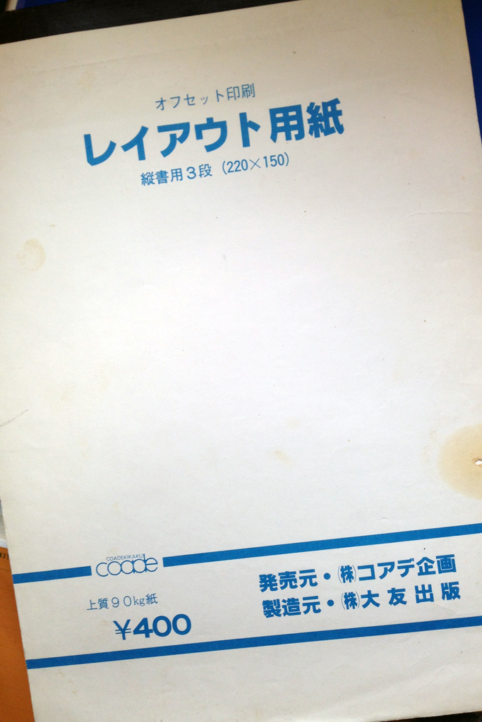 あと、これって今でもあるんですかね。縦書き3段レイアウトの手書き原稿用紙。オフセット印刷の小説同人誌を「手書きで」出すための専用原稿用紙なのですが……。