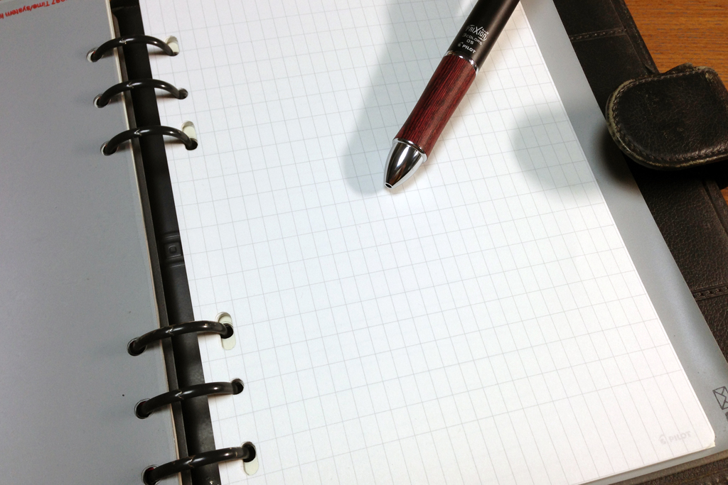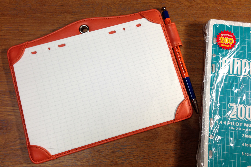 2穴、4穴、6穴に対応する優れもので(ただ、A5判の4穴バインダってまだ見たことないのですが……ヨーロッパでの規格でしょうか)、方眼も縦9ミリ×横5ミリという変則罫も気に入っていたのです。