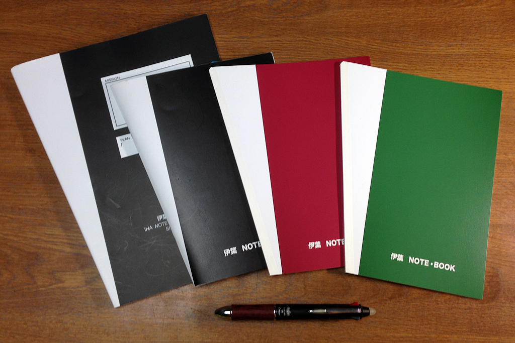 そしてその右、緑と赤のイタリアンカラーが、今回限定発売された新型伊葉ノートブックです。