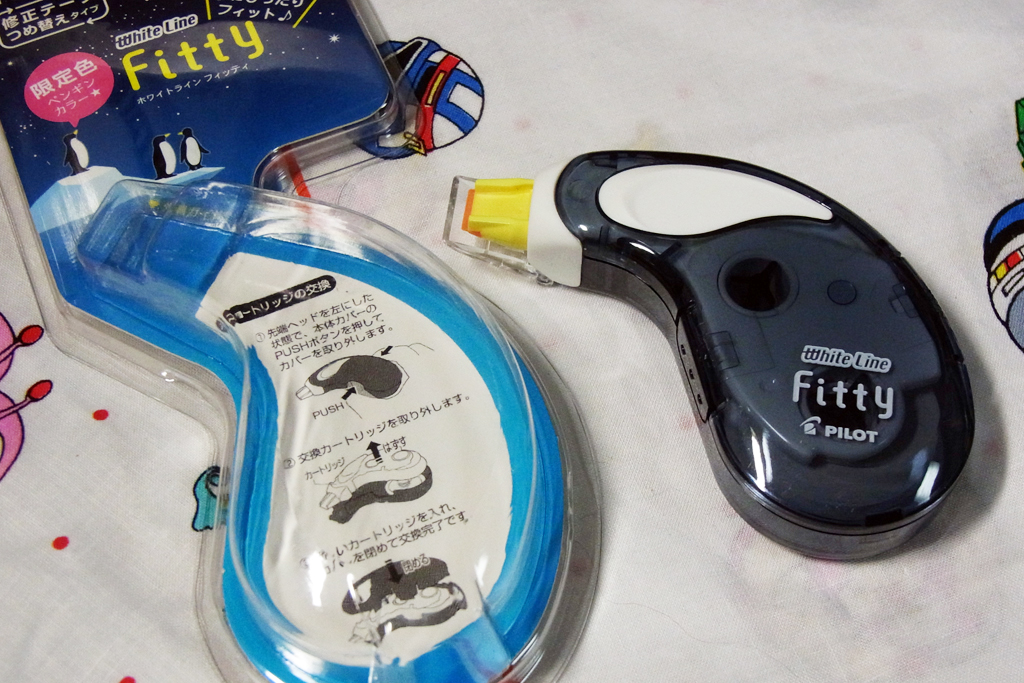 あと、これは新製品。パイロットの横引き修正テープ「フィッティ」です。