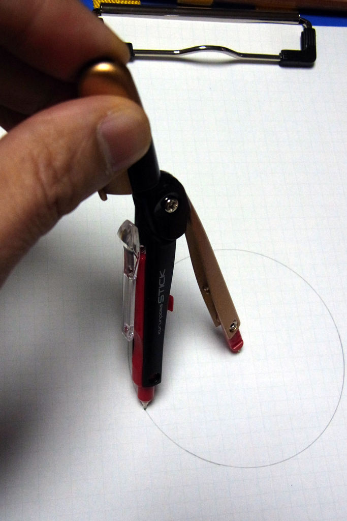 先端カバー「くるんキャップ」を外してつまみにセットすることで、超簡単に円を描くことができます。これ、試してみてください。本当に簡単なのです。