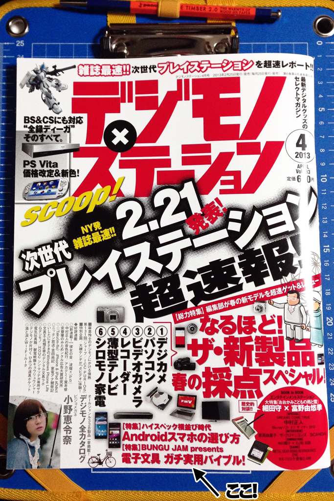 デジモノステーション2013年4月号 久々の雑誌ですね。しかもブング・ジャム3人で特集記事です。 『デジモノステーション』2013年4月号(2月25日発売)にて、われわれブング・ジャムがデジタル文具について見開き6ページも語っております。お手にとってご覧いただければ幸いです。 [1回] コメント コメントを書く コメントを書く コメント送信
