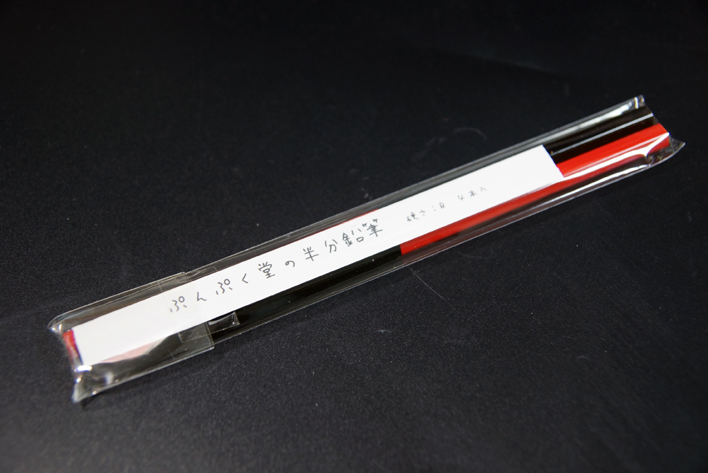 そういう声に押されて登場したのが、ぷんぷく堂一周年記念のオリジナル鉛筆「半分鉛筆」です。