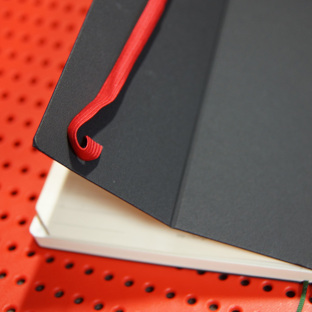 裏表紙が折れ曲がり、指かけで一気にめくることのできる「記入済ページの検索」はもちろん、自分に染みついたスピンによる「新しいページ(あるいは書きかけのページ)の検索」も実装したアクセスノートブック。