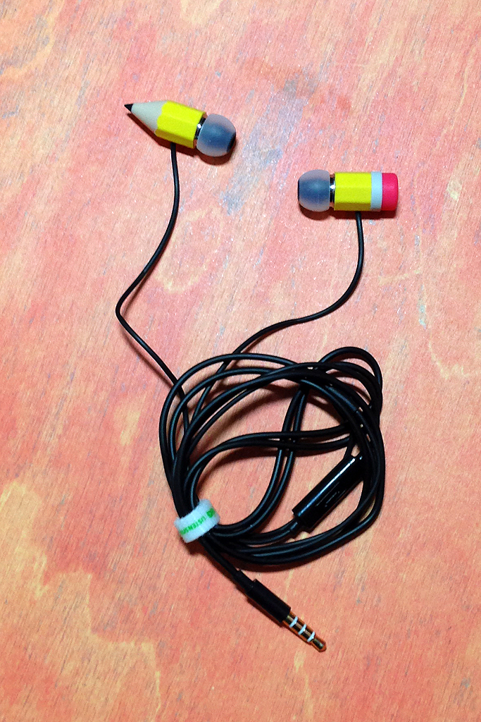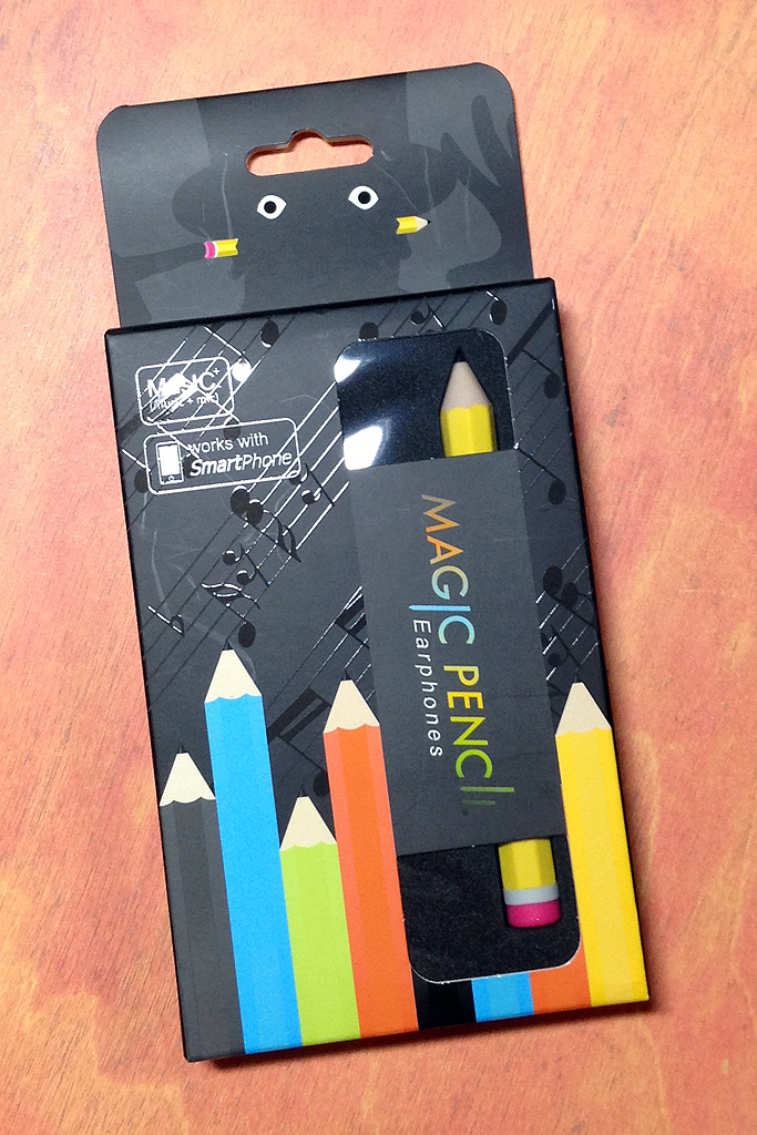 装着すると頭を鉛筆が貫通しているように見えるインナーヘッドフォンです。