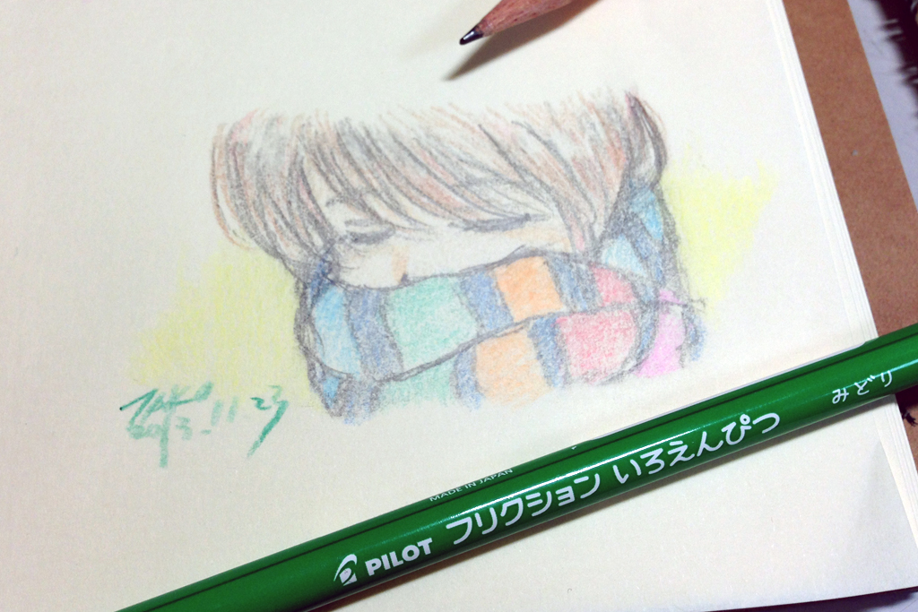 発色はやや薄め。ただ、色鉛筆にも種類によっては堅めで発色の抑えられている色鉛筆はありますので、小生はそこまで気にはなりませんでした。