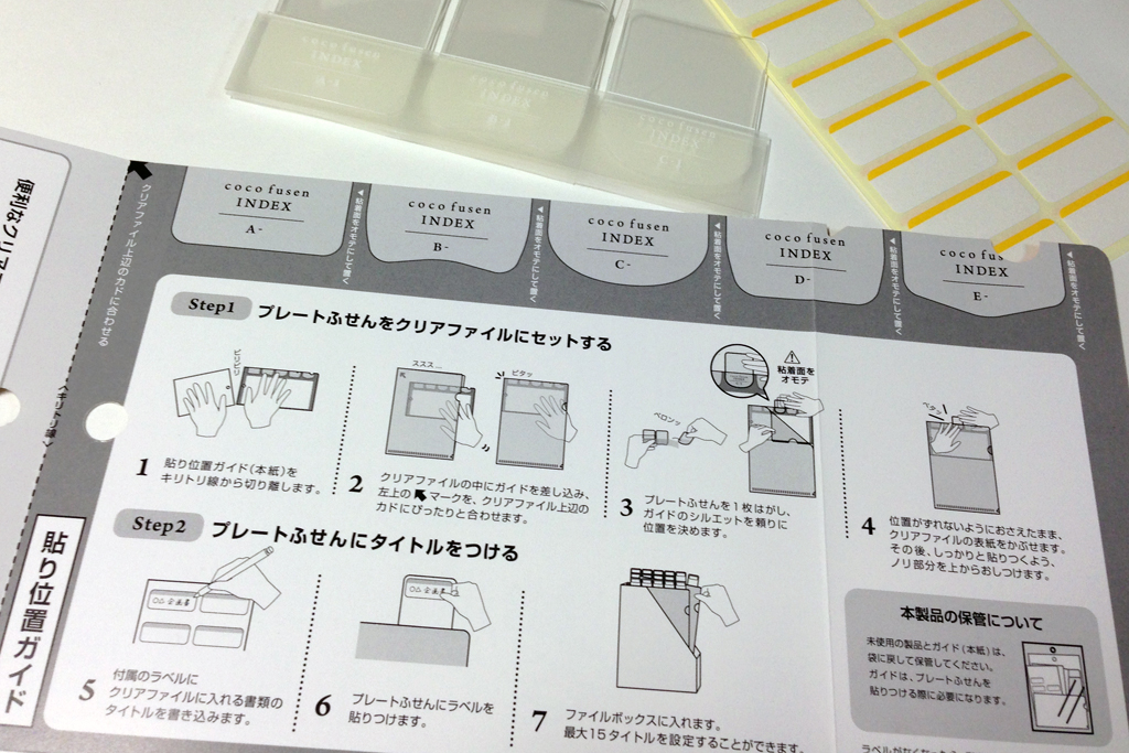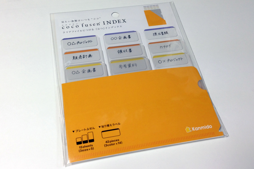 ココフセンインデックスは700円(税抜)。クリアホルダーが手許に余っている方、すでに書類をクリアホルダーで分類している方、ぜひお試し下さい。そしてこの気軽なファイリングシステムで、寝ている書類を起こしてみませんか?