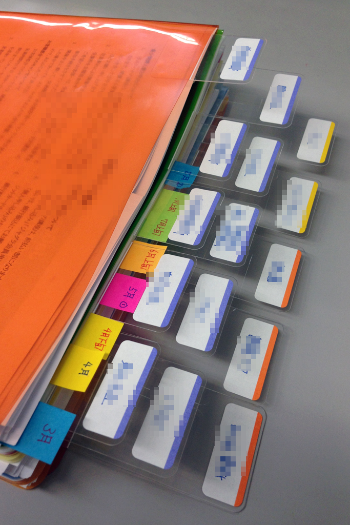 プレートふせんが透明なので、中の書類に貼った付箋をはみ出させてサブインデックスにすることも可能です。
