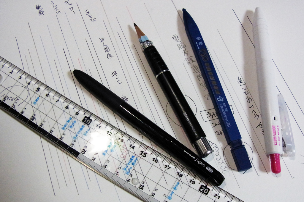 鉛筆、シャープペン、油性ボールペン、水性ボールペン、どれもスムーズで問題がありません。
