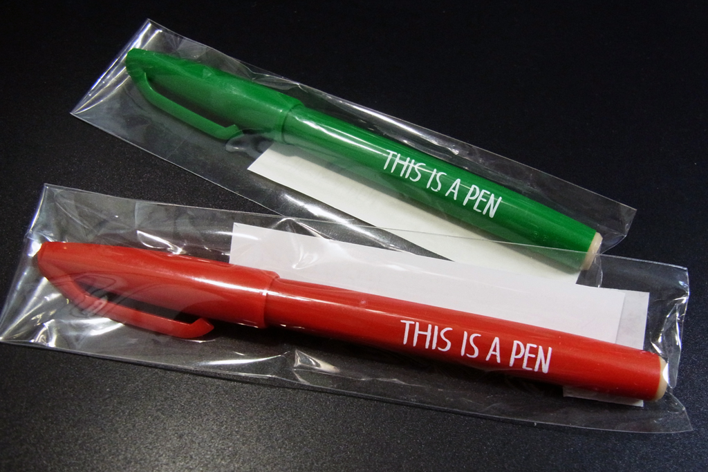 ご存知ぺんてるのサインペンに、でっかく書かれた「THIS IS A PEN」の文字。