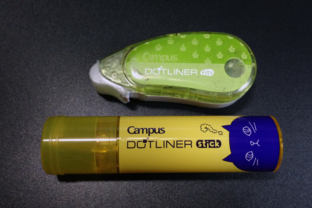 コクヨのテープのりシリーズ「ドットライナー」でも「貼った直後は粘着力が弱く貼り直しが効いて、数時間が経過すると強粘着に変化する」ドットライナーフィッツというシリーズがありまして、これは小生も愛用しているテープのりなのですが。