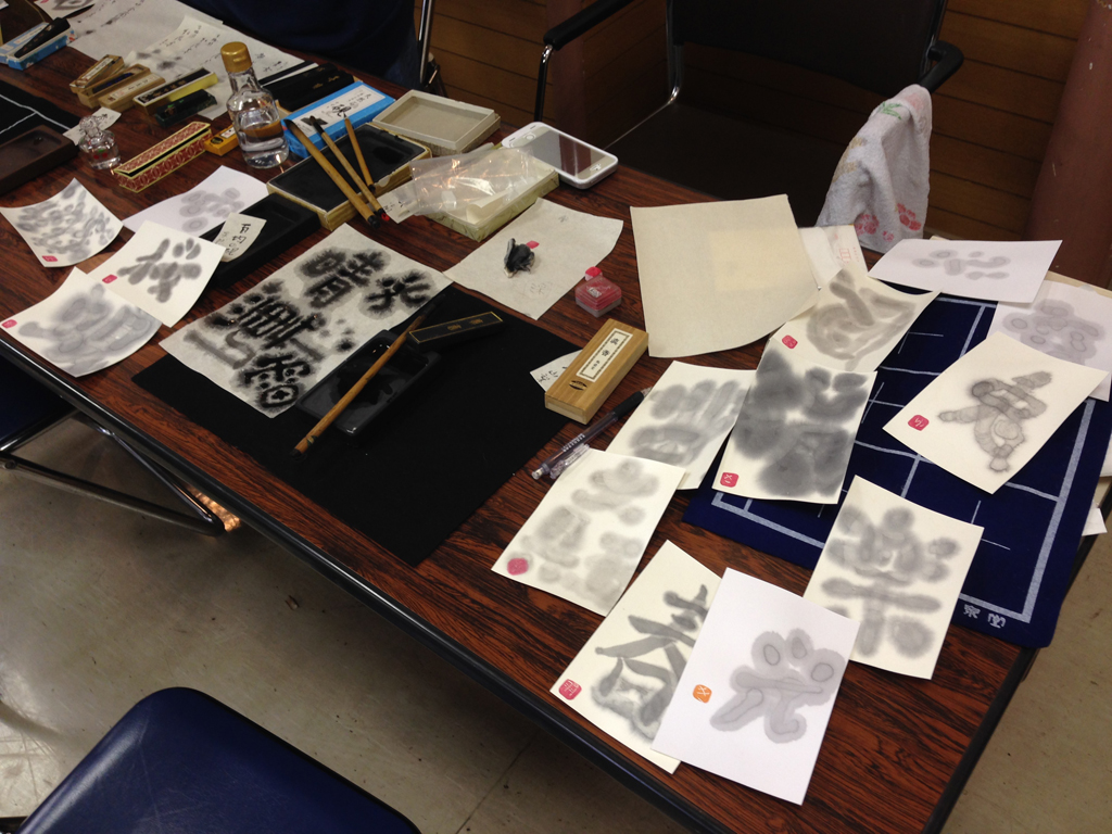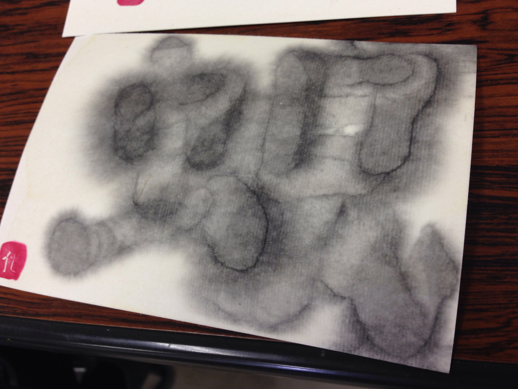 「全力でにじませよう!!」ということで、故郷である浜松市蜆塚の「蜆」を書いてみました。見事ににじんでいます。大変たのしい経験でした。