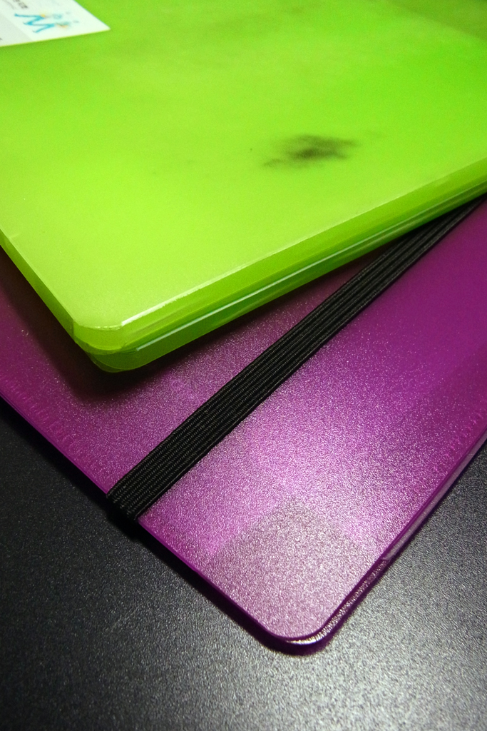 ゴムバンド、ペンホルダー、改良された用紙押さえ、太くなった背見出しとタイトルシール付属。