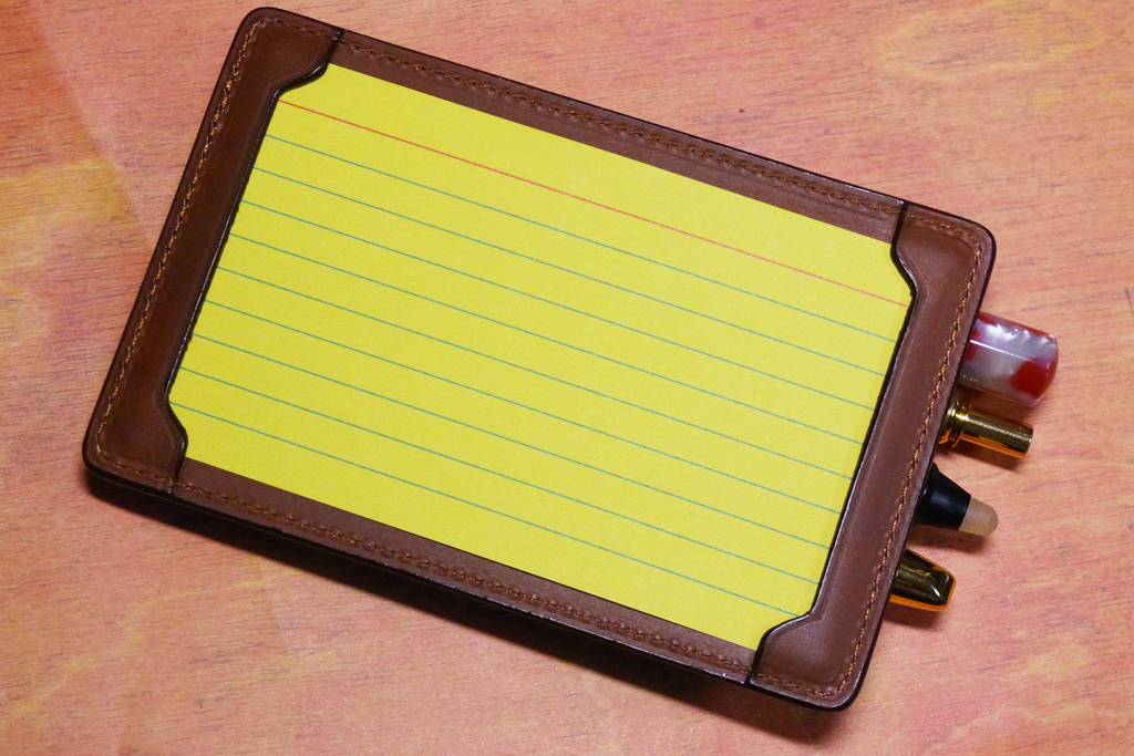 コレクトなどで専用のパースを販売していますし、小生もメインはモレスキンのポートフォリオですが、「雑貨屋などで5×3カードに合うケースを探す」という楽しみもありではないでしょうか。