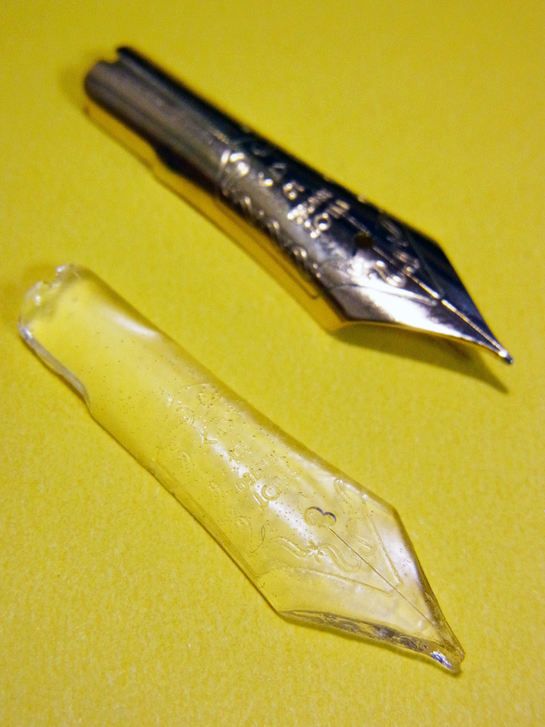 ムスメのレジン工作にリクエストをしてみる ムスメがUVレジンでペンダントとかをつくるようになったので、ちょっとお願いをしてみました。「万年筆のペン先を型で取って、レジンでペンダントトップを作れるかい?」さっそく試作に入ったようです。 今夜初めて取ったテストショット。ペン先に刻印された模様や文字まで取れるんですね。まだまだテストをしてくれるというので、今後が楽しみです。 [2回] コメント コメントを書く コメントを書く コメント送信