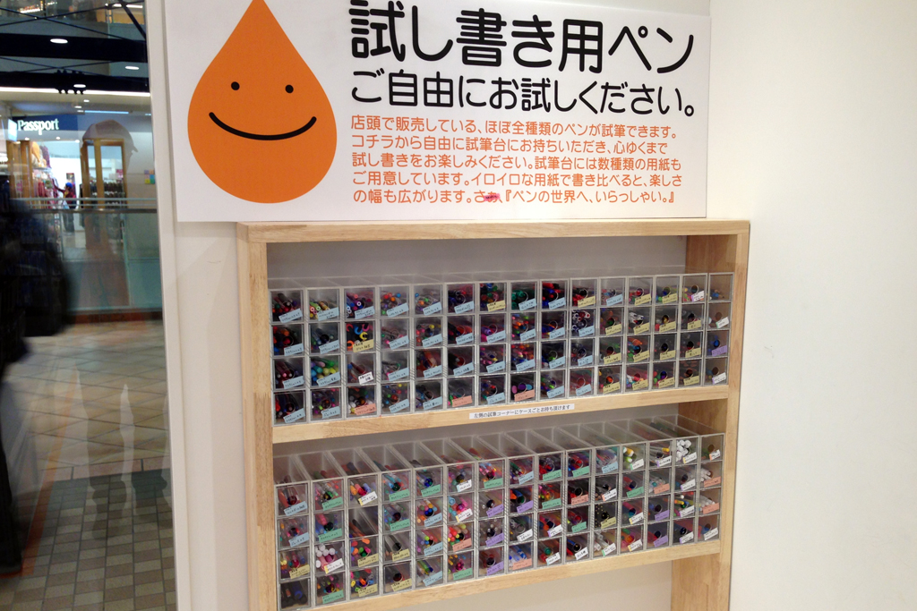 店内で購入できる消耗筆記具のほとんどが、ここで試し書き可能です。