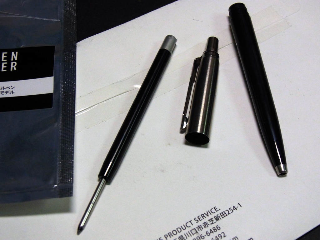 メールでのやりとりでは、「パーカージョッターの本体自体にばらつきがあり、収納前にペン先が出てしまう可能性が否定できない」ということで、現在流通しているパーカー互換リフィルアダプターは改良を加えてあるそうです。