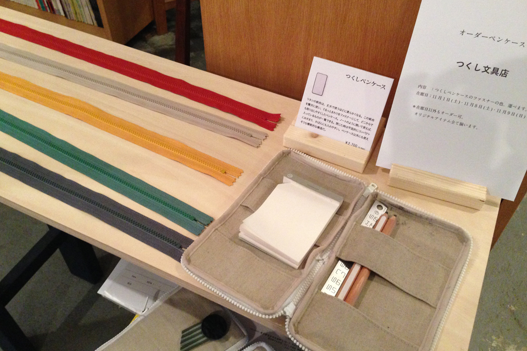 その際、平安工房に出張所を設けているつくし文具店にて「好きな色でカスタムつくしペンケースをオーダーできる」コーナーがありました。
