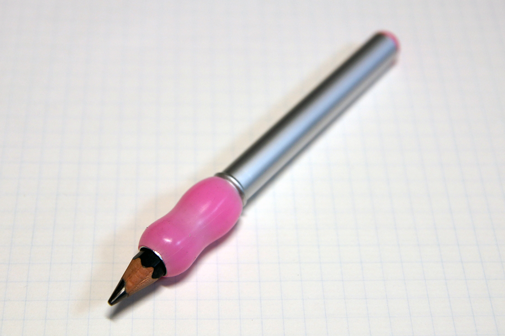 リング状に膨らんでいる部分をグリップだと仮定すると、あまり長い鉛筆は補助軸としては運用しづらいです。