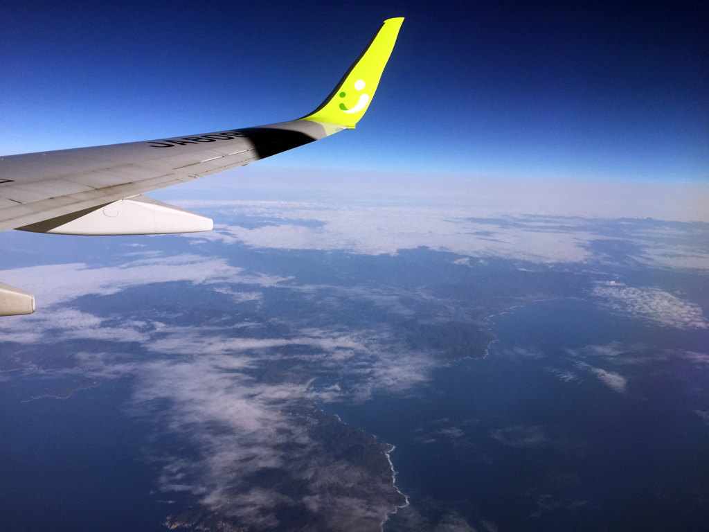 いちどやってみたかった写真を撮ったり(劇中と同じ場所ではないことが悔やまれますが)あご出汁スープを飲んだり、かなりリラックスした状態でフライトを満喫しまして。