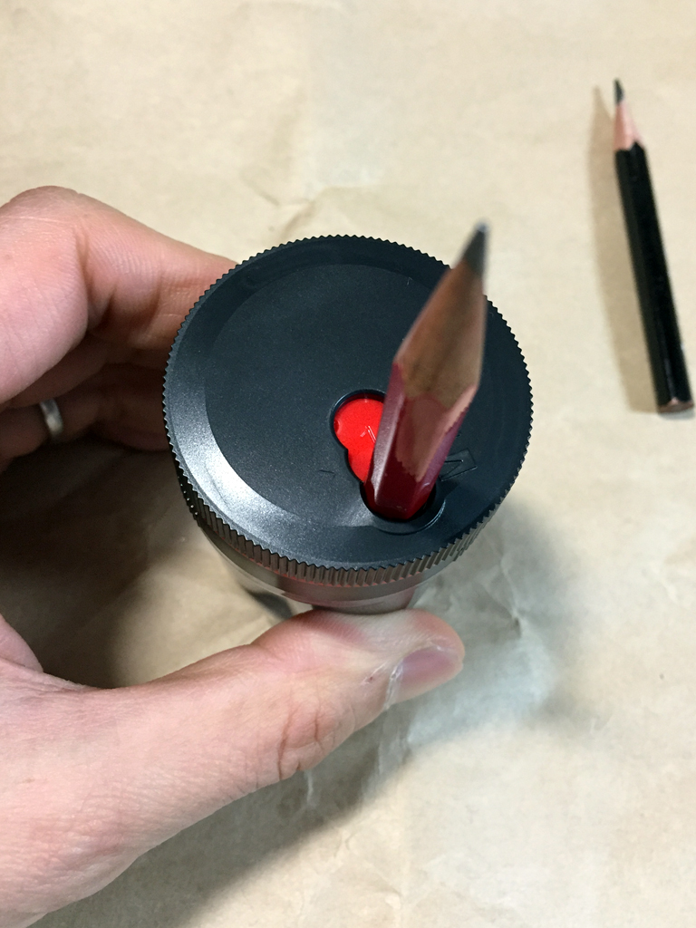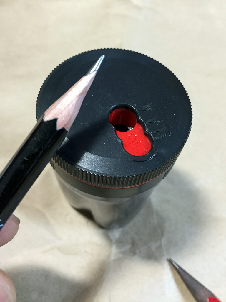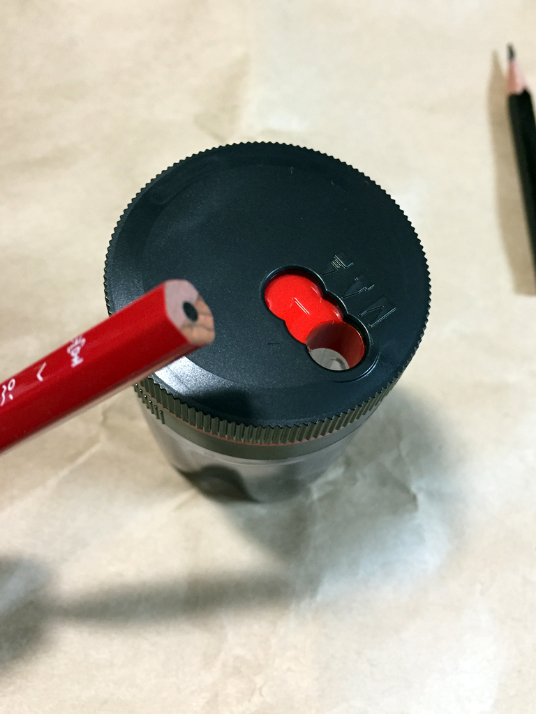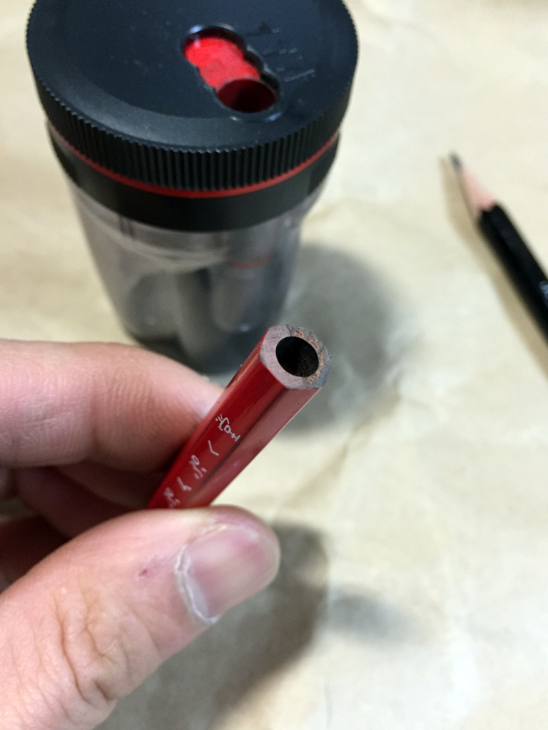 先に削ってあった短い鉛筆と合わせ、綺麗に入るかどうかを確認してください。