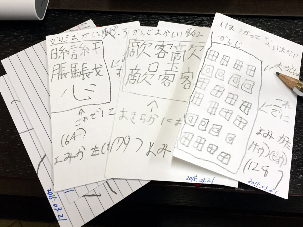 ダイノジと小生はいろいろなことをして遊んでいたのですが、一番興が乗ったのがこの「5×3カードに鉛筆で画数の多い漢字を書いてみる」遊びでした。