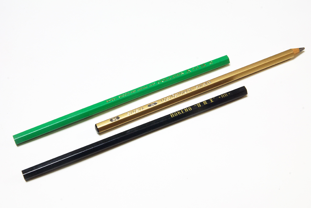 杉並区の硬筆書写鉛筆ではないかと言われているゴールド軸の「高級書写鉛筆 文書館謹製」は6Bあたりでしょうか。かなり柔らかい鉛筆です。