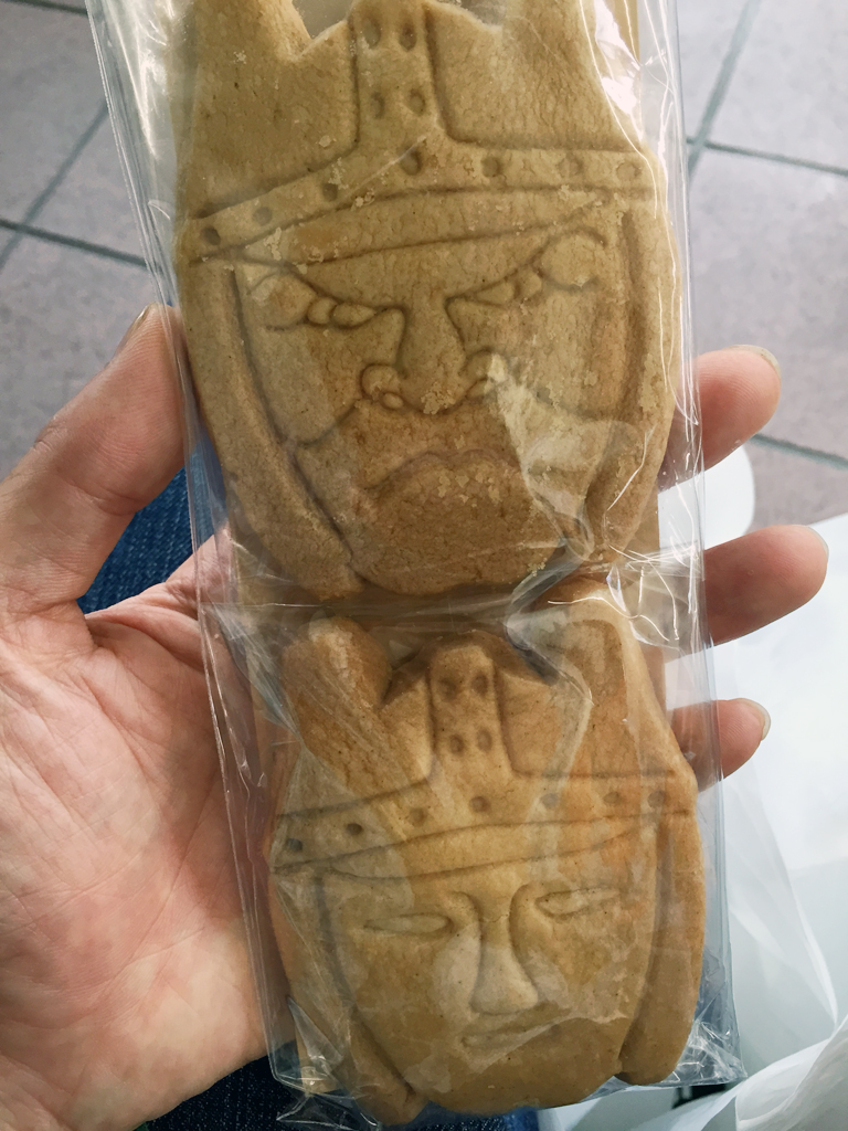 お土産は、SHOP MAJINオリジナルの「大魔神クッキー」。あと、ダイノジに特撮リボルテックのG2を買ってあげました。