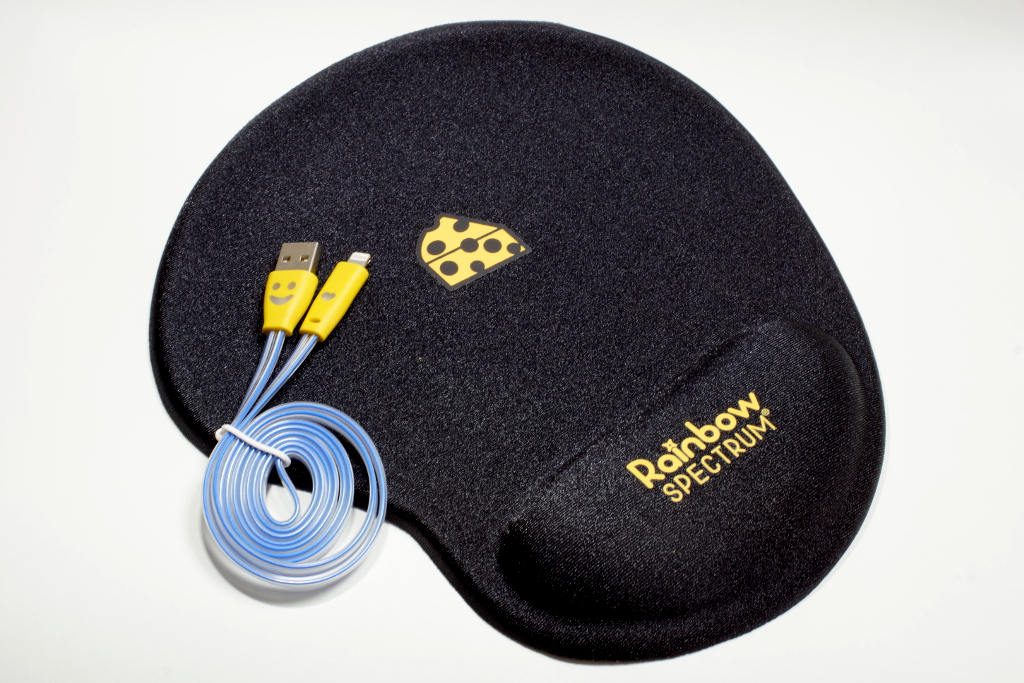 店のロゴ入りマウスパッド(税込421円)と、びかびか光るライトニング(!)ケーブル(税込518円)。