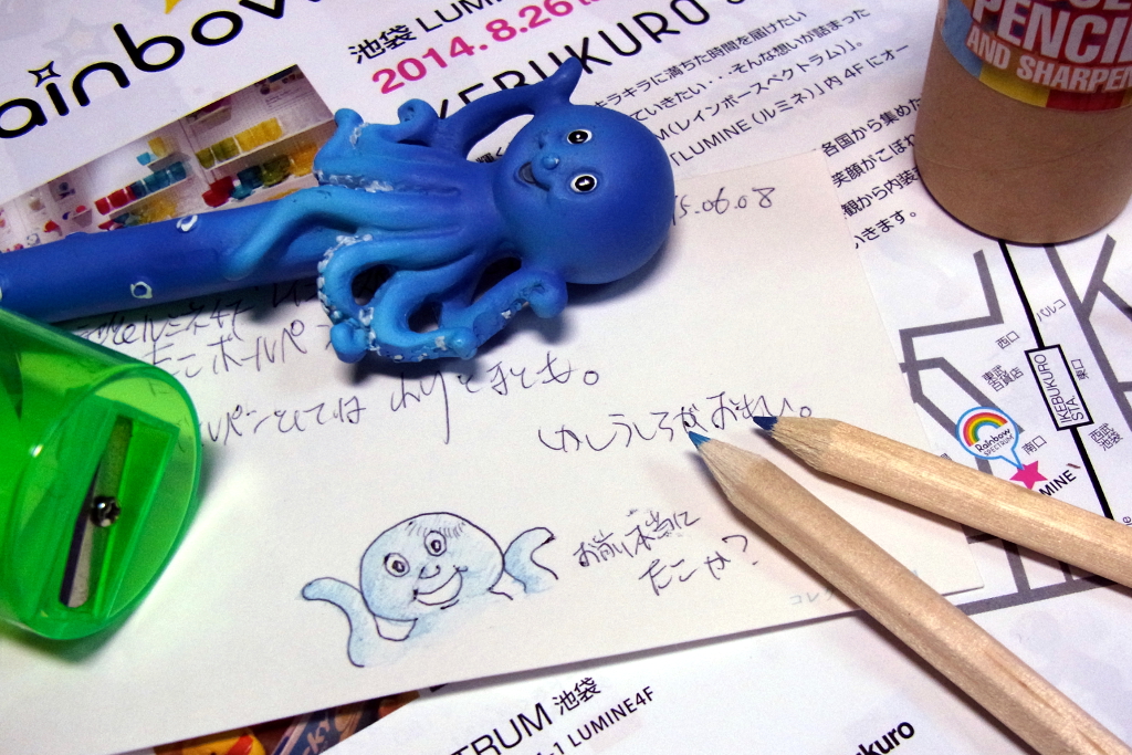 そして青くて口と鼻がある(!)たこボールペン(税込216円)。たこ部分がずいぶん重くてやたらトップヘビーです。
