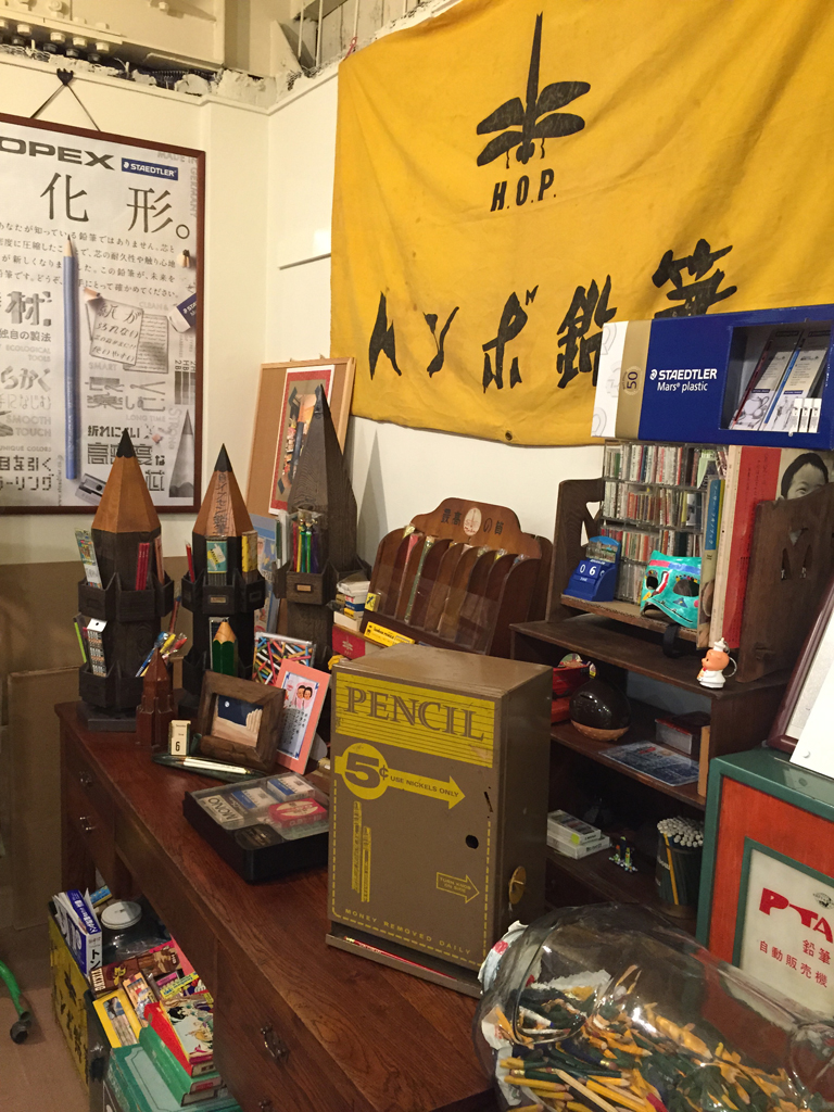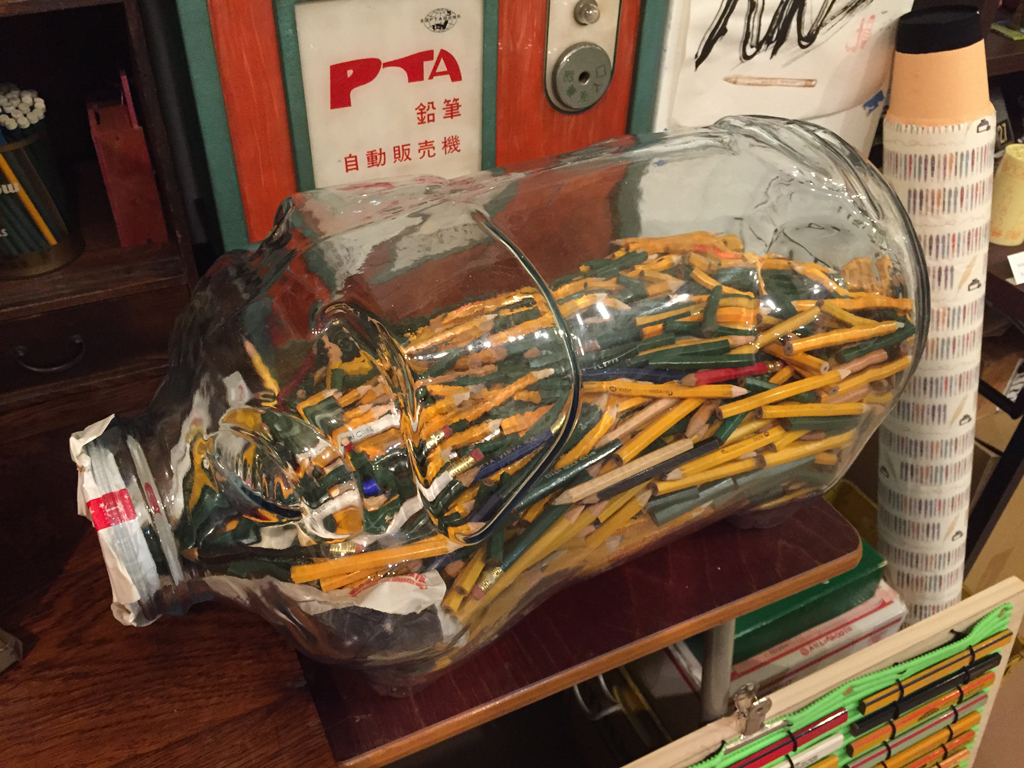 社長の蒐集したおびただしい鉛筆の展示、「鉛筆1万本集めちゃいまし展」です。