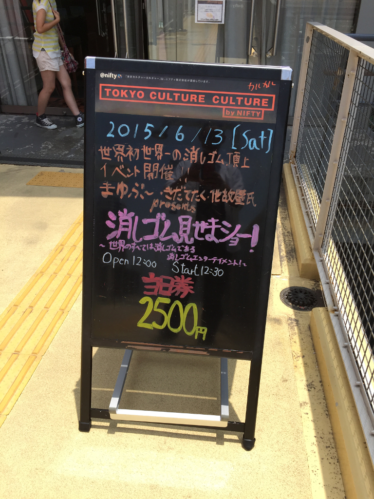 というわけで、先週土曜日──2015年6月13日に、お台場にあるライブハウス「東京カルチャーカルチャー」にて、消しゴム三昧のトークライブを行って参りました。