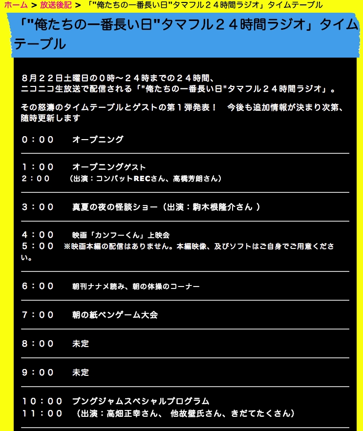 8月22日にニコニコ生放送にて24時間ラジオを行うことを発表したタマフル。