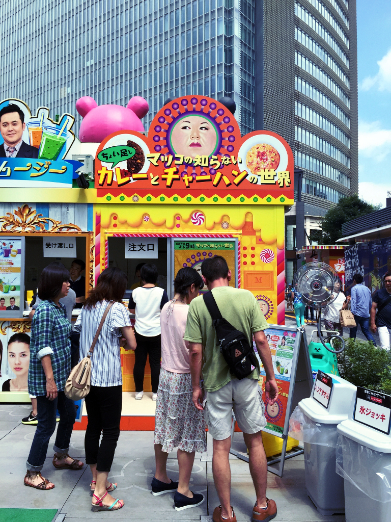 きだて氏と岩崎さんと小生は、TBS前で行われていた屋台村に突撃。