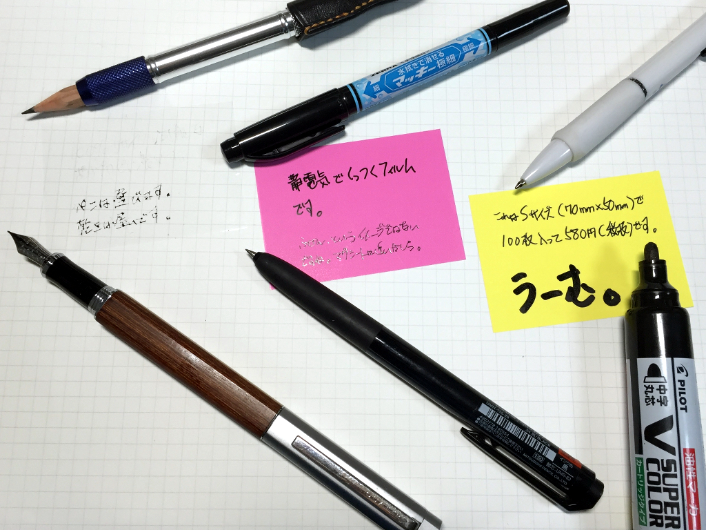 手許にある筆記具で、表面の書き心地を試してみました。