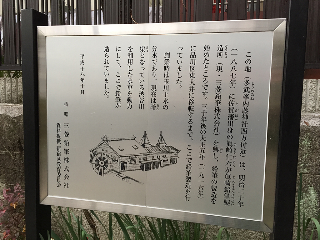 ここに、三菱鉛筆創業の碑、「鉛筆の碑」があります。