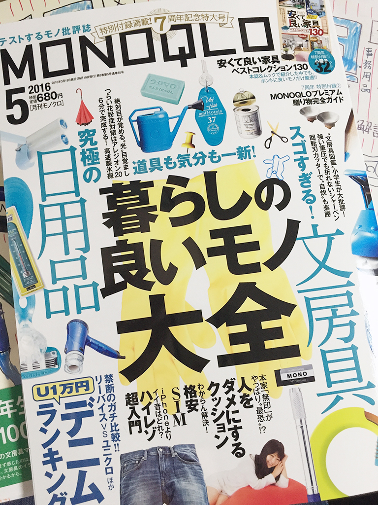 きだて氏と健太郎くん、小生とMONOQLO編集部で選んだ文房具を特集した記事が載っております。
