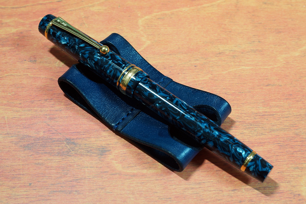 張りのある革が適度な硬さと弾力を持って、大型の万年筆もしっかりと受け止めてくれます。