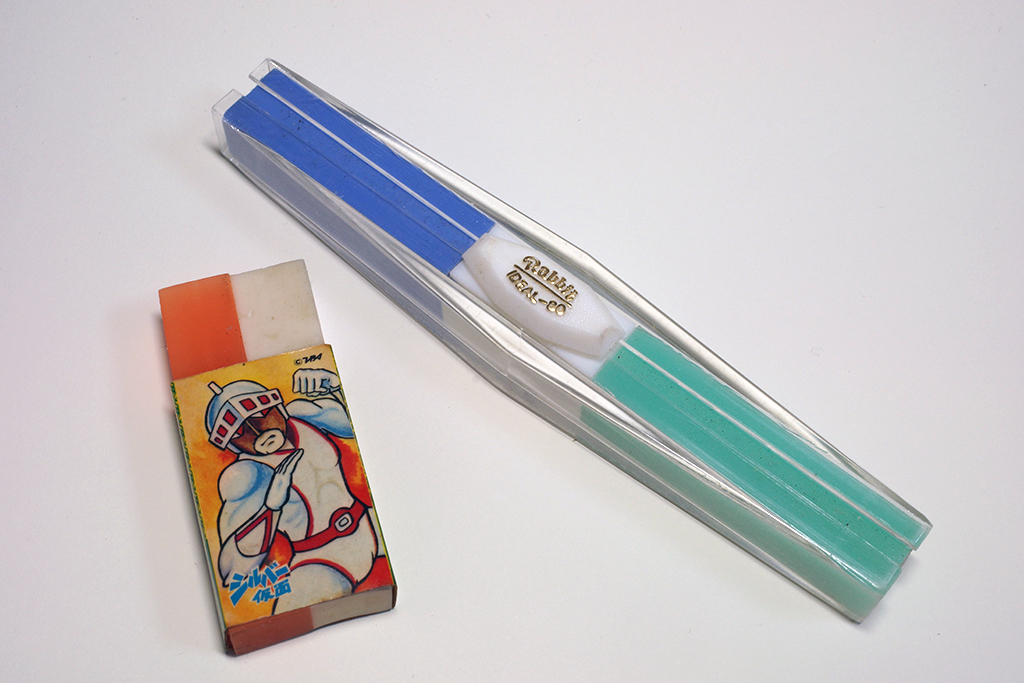 手前の小さい方が、『シルバー仮面』消しゴムです。