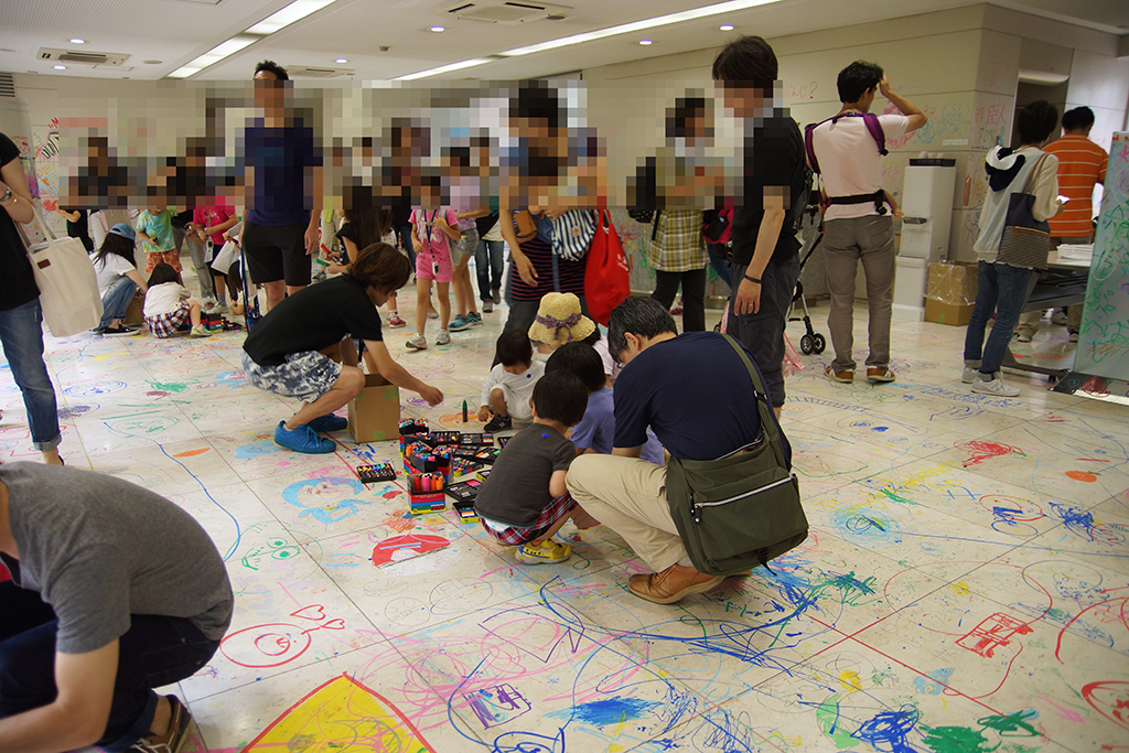 「わくわく楽描きイベント!!」と題されたこの会は、旧本社一階部分を解放し、子供たち(3歳から15歳まで)に思いっきり壁や床や窓に落書きをしてもらおう! という太っ腹な企画です。