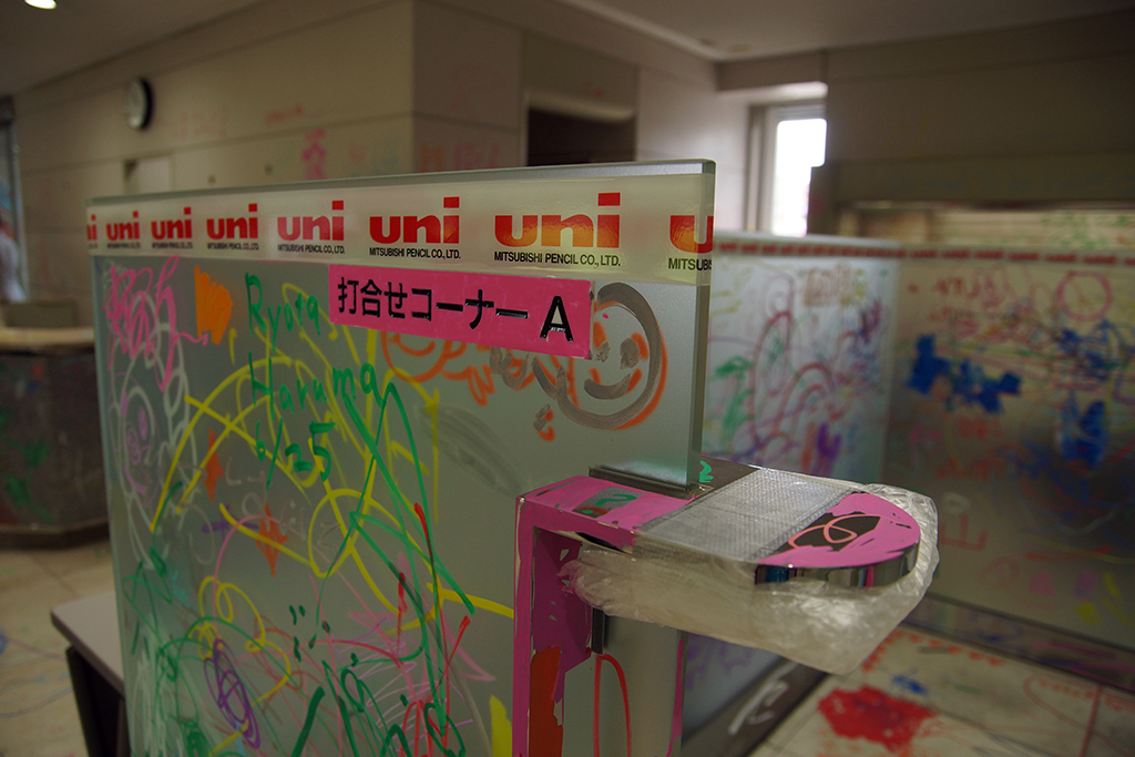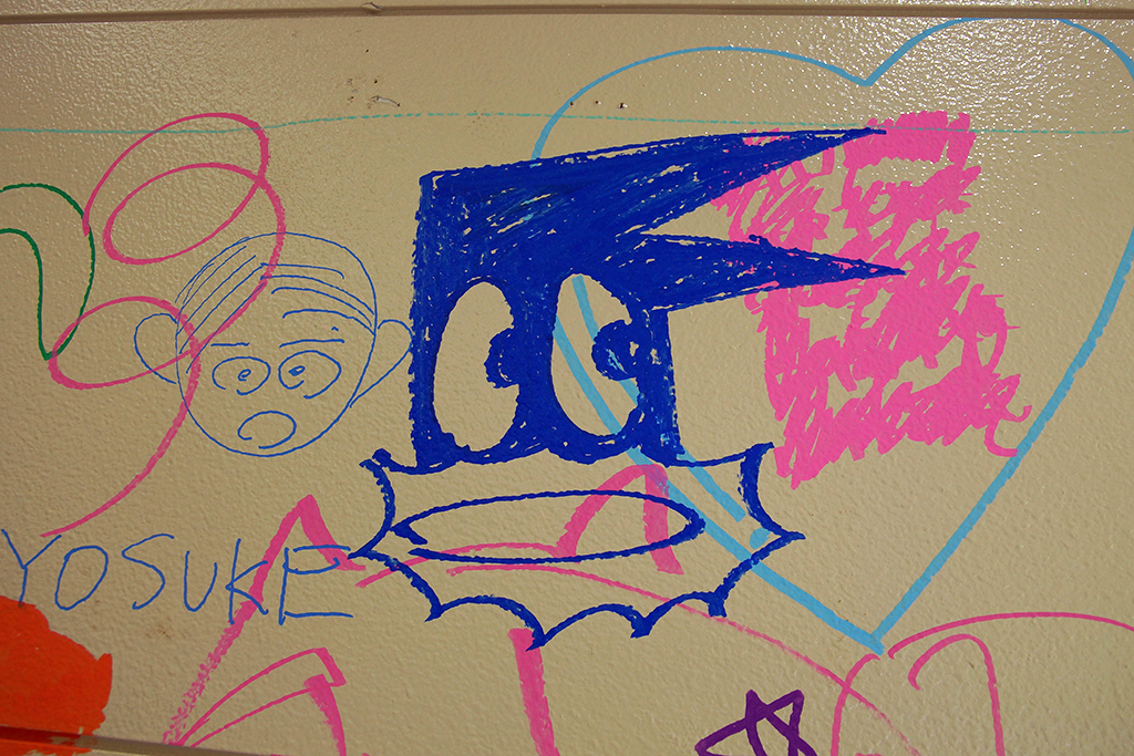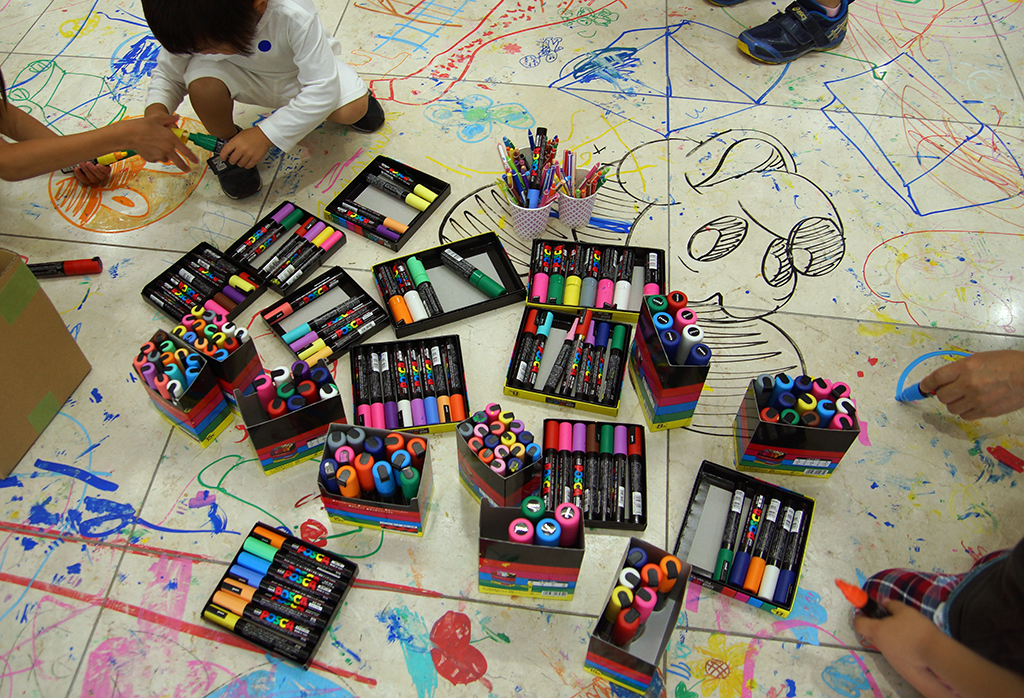基本の筆記具はポスカですね。ポンキーペンシルも置いてあったのですが、大きく落書きするならやっぱり太字や極太のポスカがいいようです。