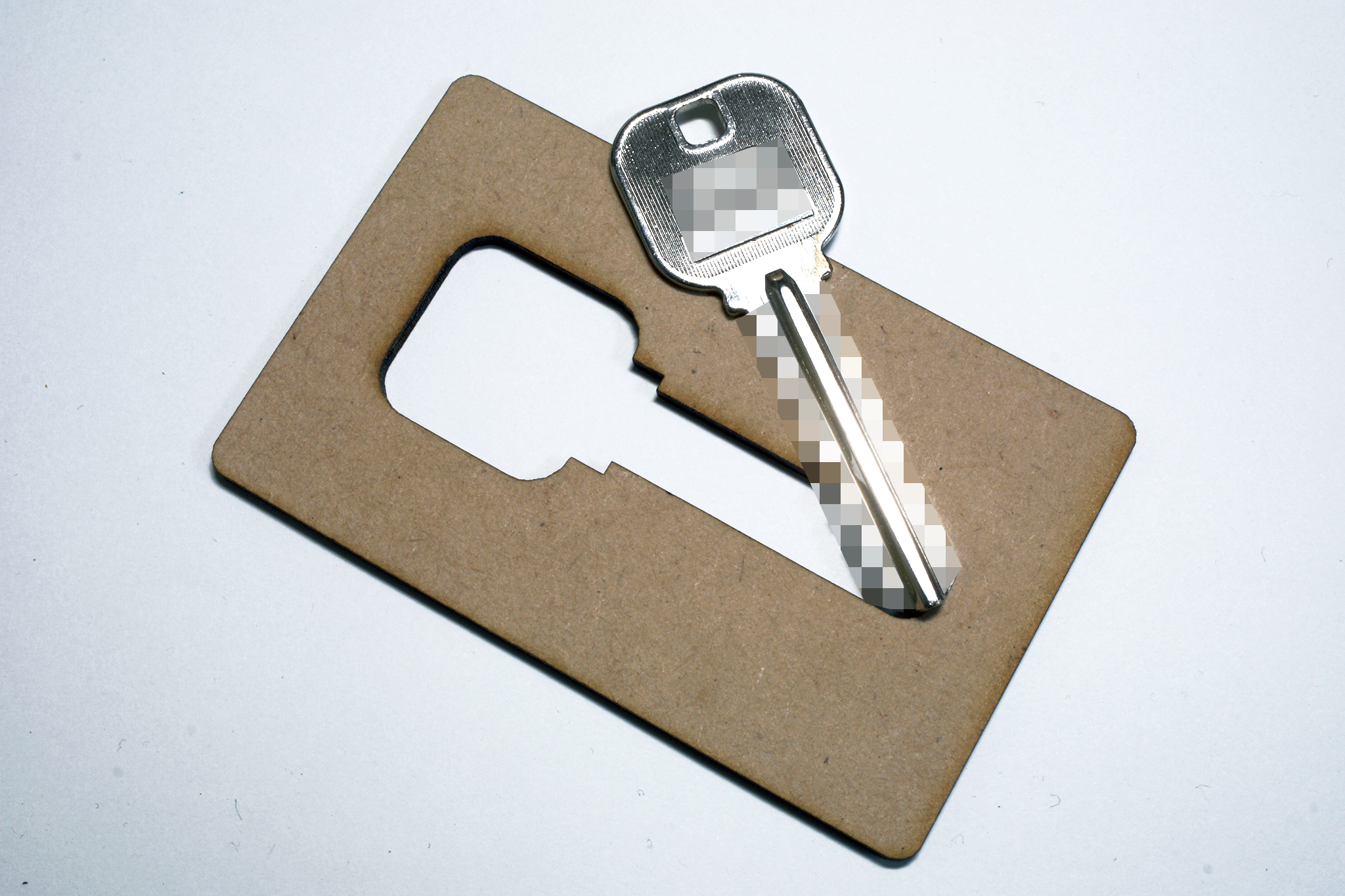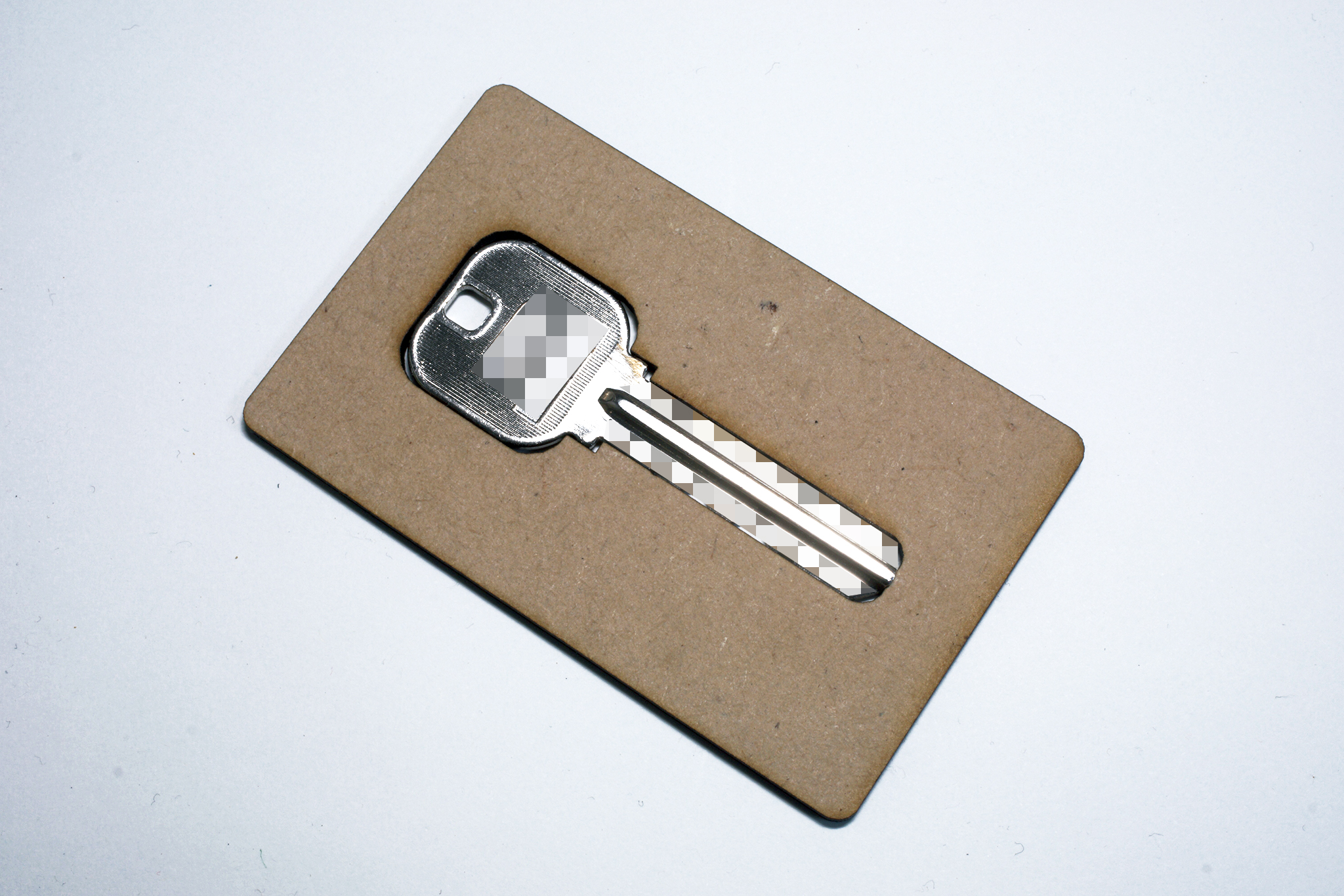 一度、もう使わないプラスチックのポイントカードをカッターで切り抜き、鍵を入れて持ち歩いたことがあります。