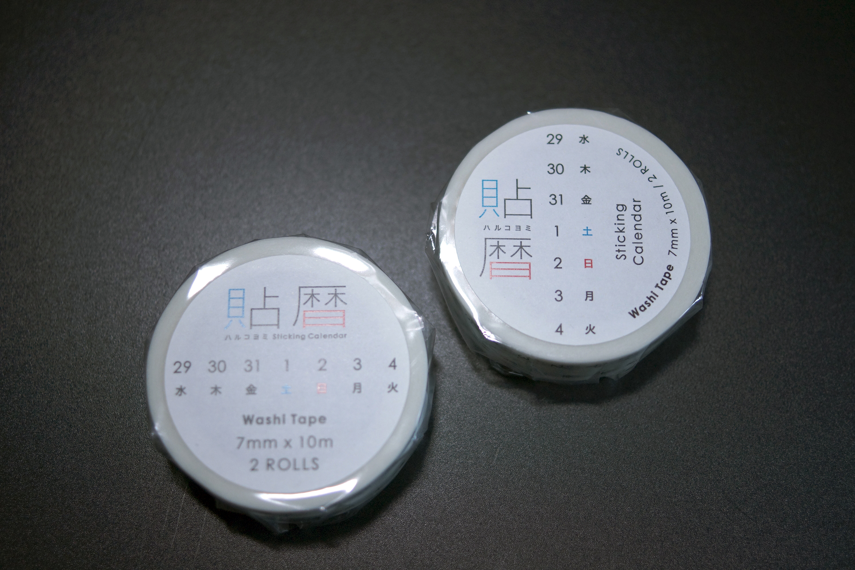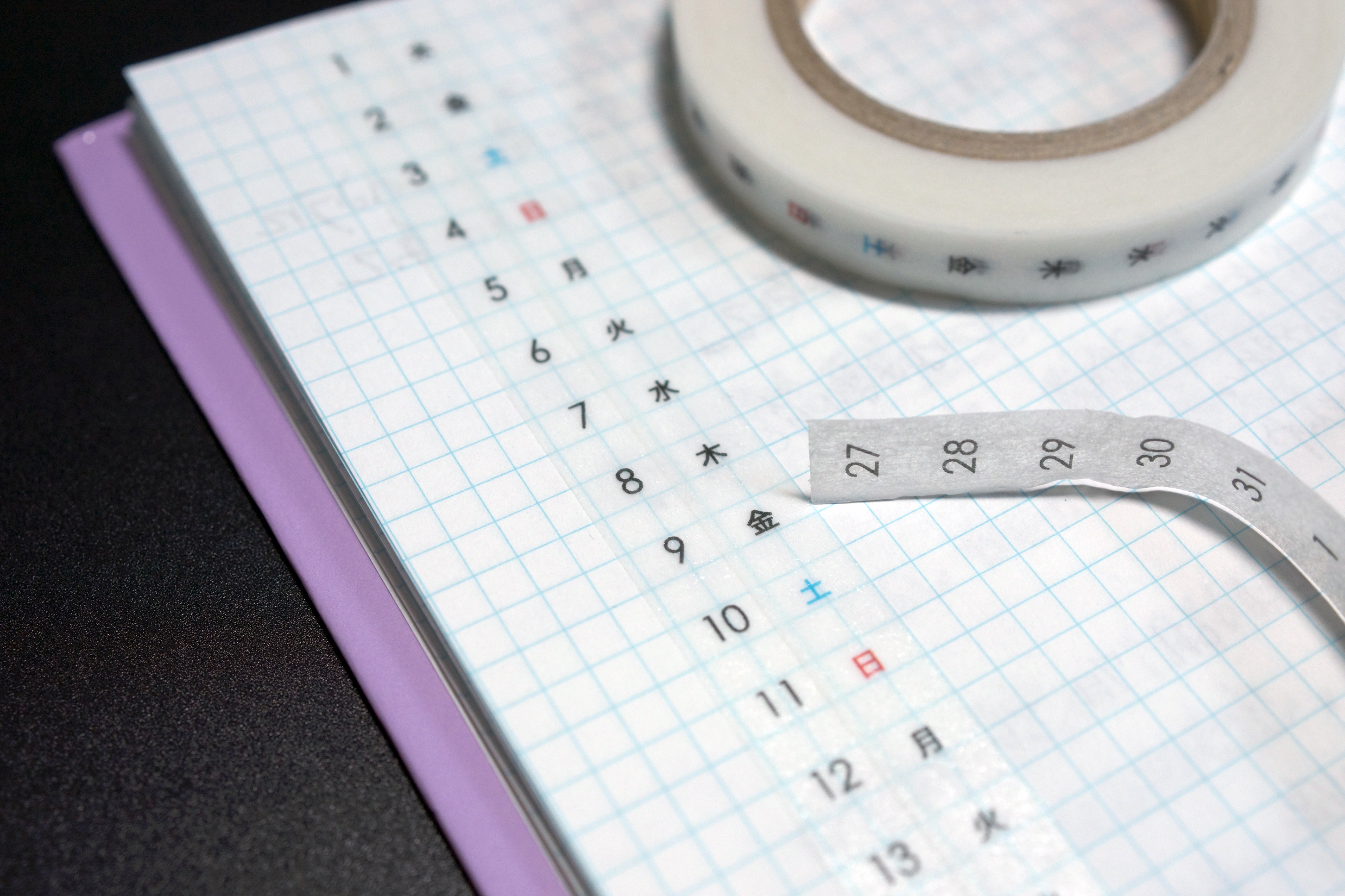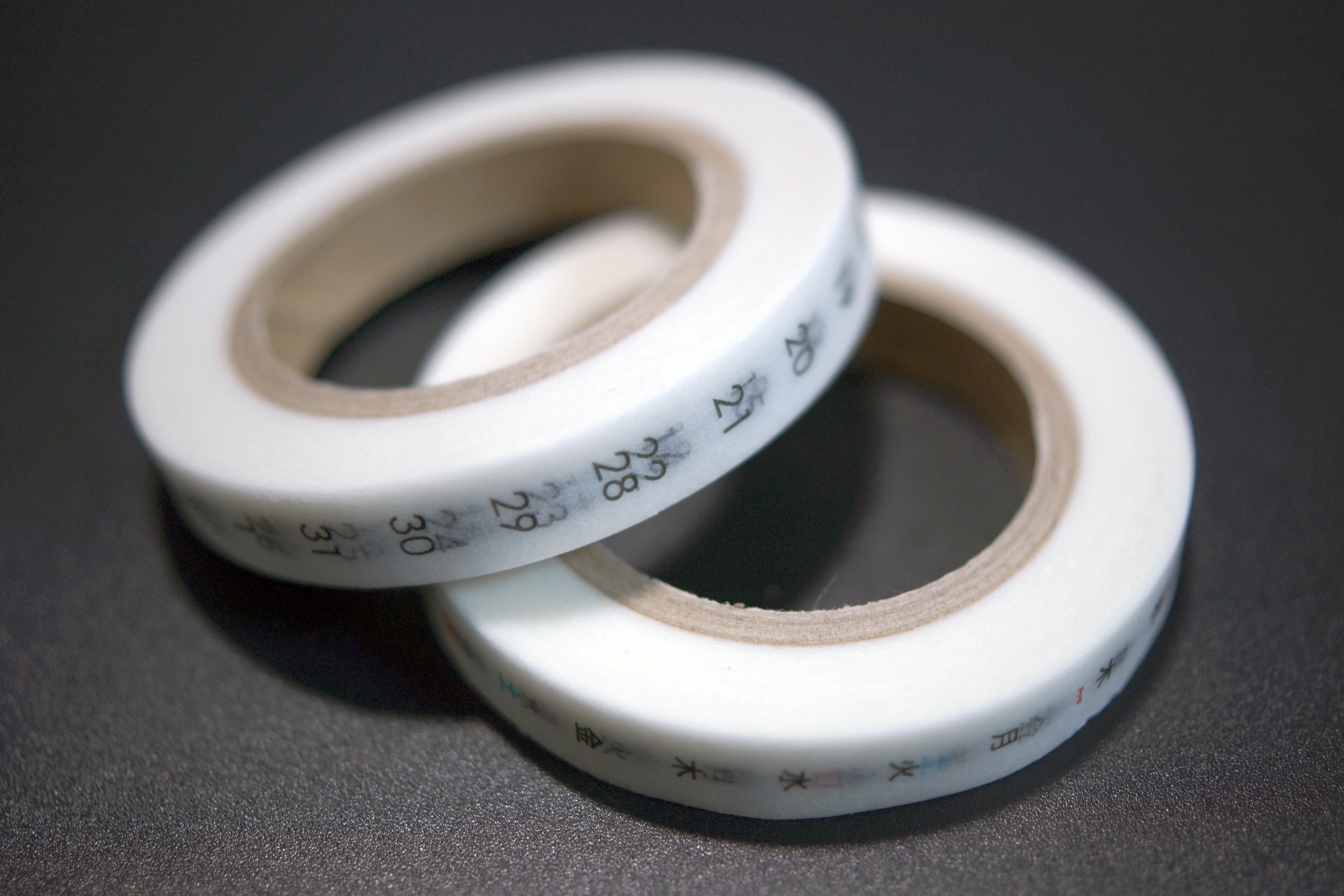 1から31までの数字が入ったマスキングテープと、それに呼応する曜日の入ったマスキングテープの2本組です。