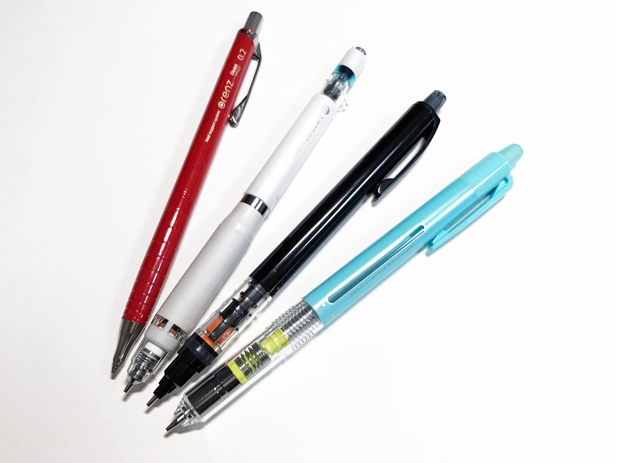 現行の、「折れない」ことを売りにしたシャープペンシルたち(すいません、このジャンルの元祖たるオレーヌが行方不明で……)。