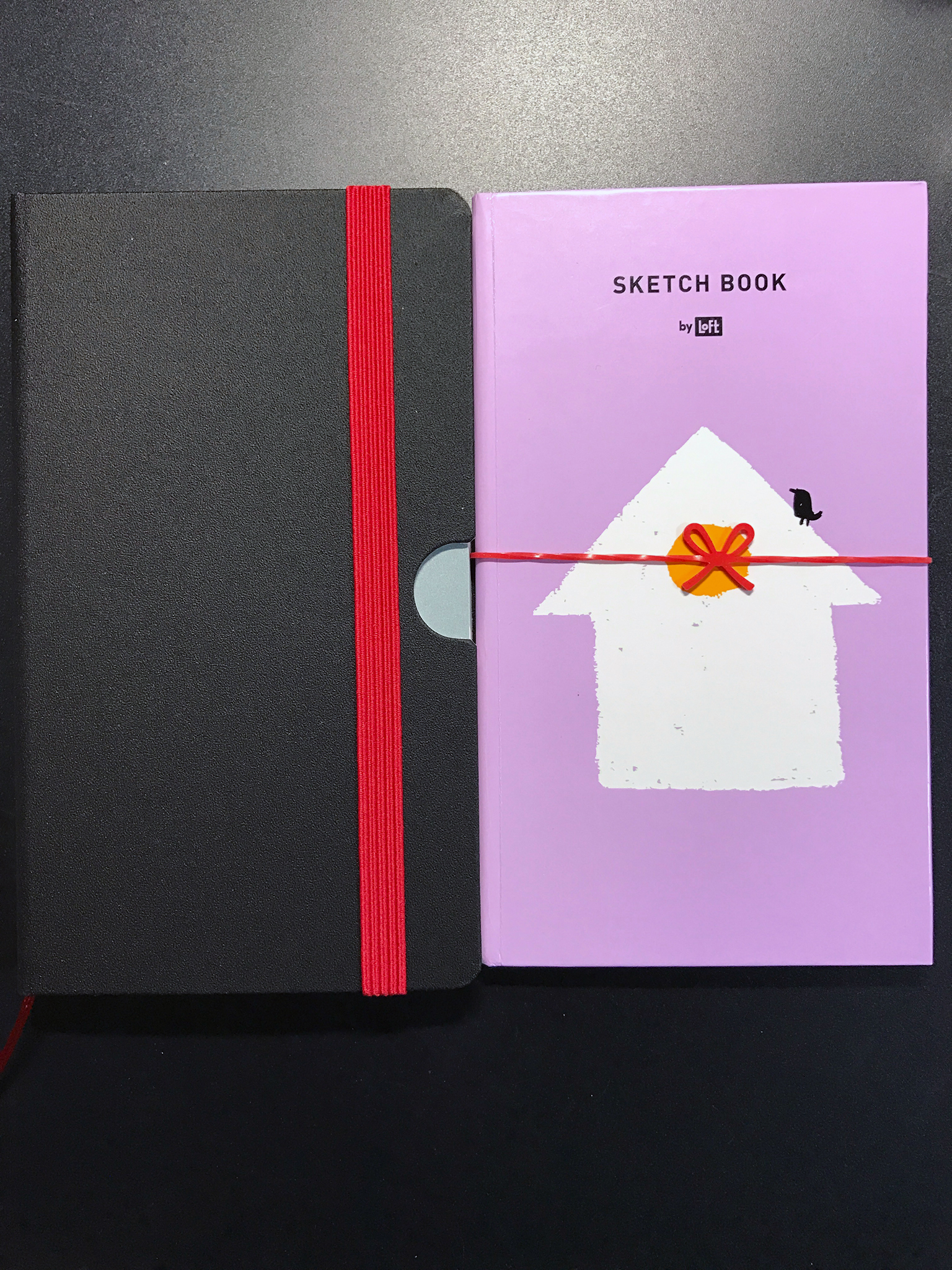 会社でのA5プラスサイズが黒/赤、グレー/グリーン、白/ピンクときて、現在4冊目の黒/赤を使用しているので、小生はまず黒/赤から開けました。ただ、3冊の中で一番気に入っている配色はグレー/グリーンです。