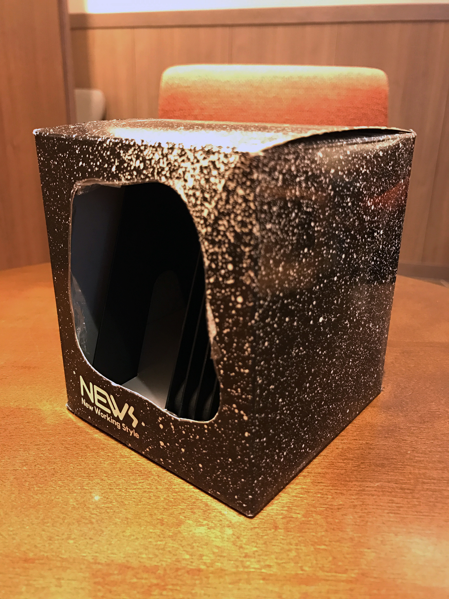 それなのに、パンチやブックエンドが整然と並ぶ中、このパッケージだけがまるで違和感まるだしで置かれていて。