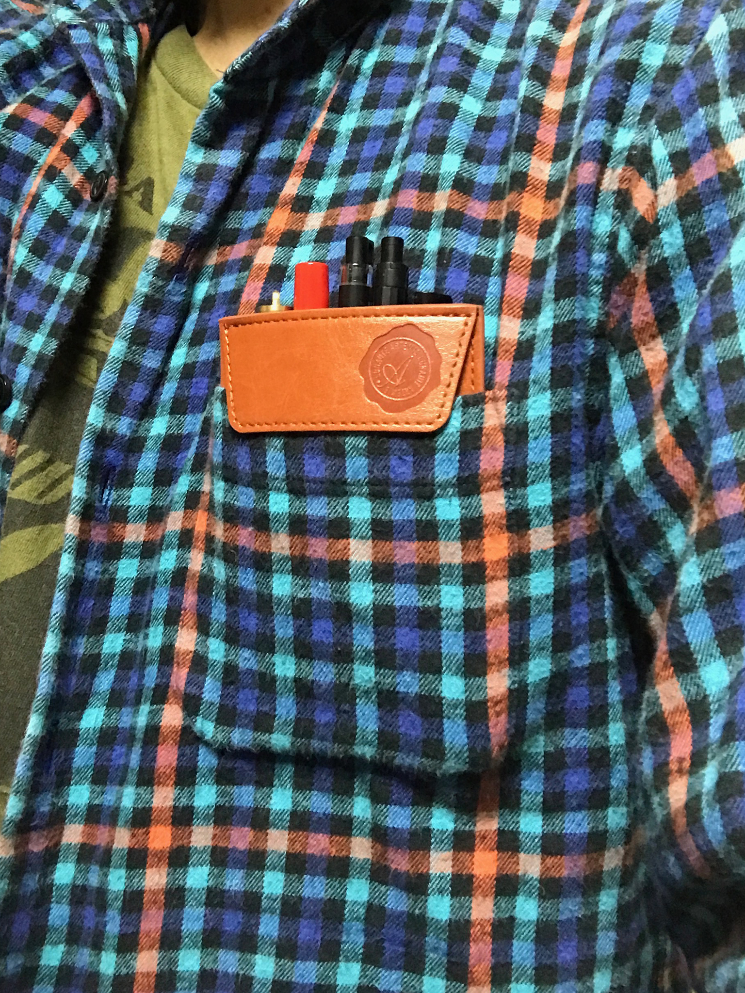 シャツの胸ポケットに忍ばせるときは、ベロを外に出します。
