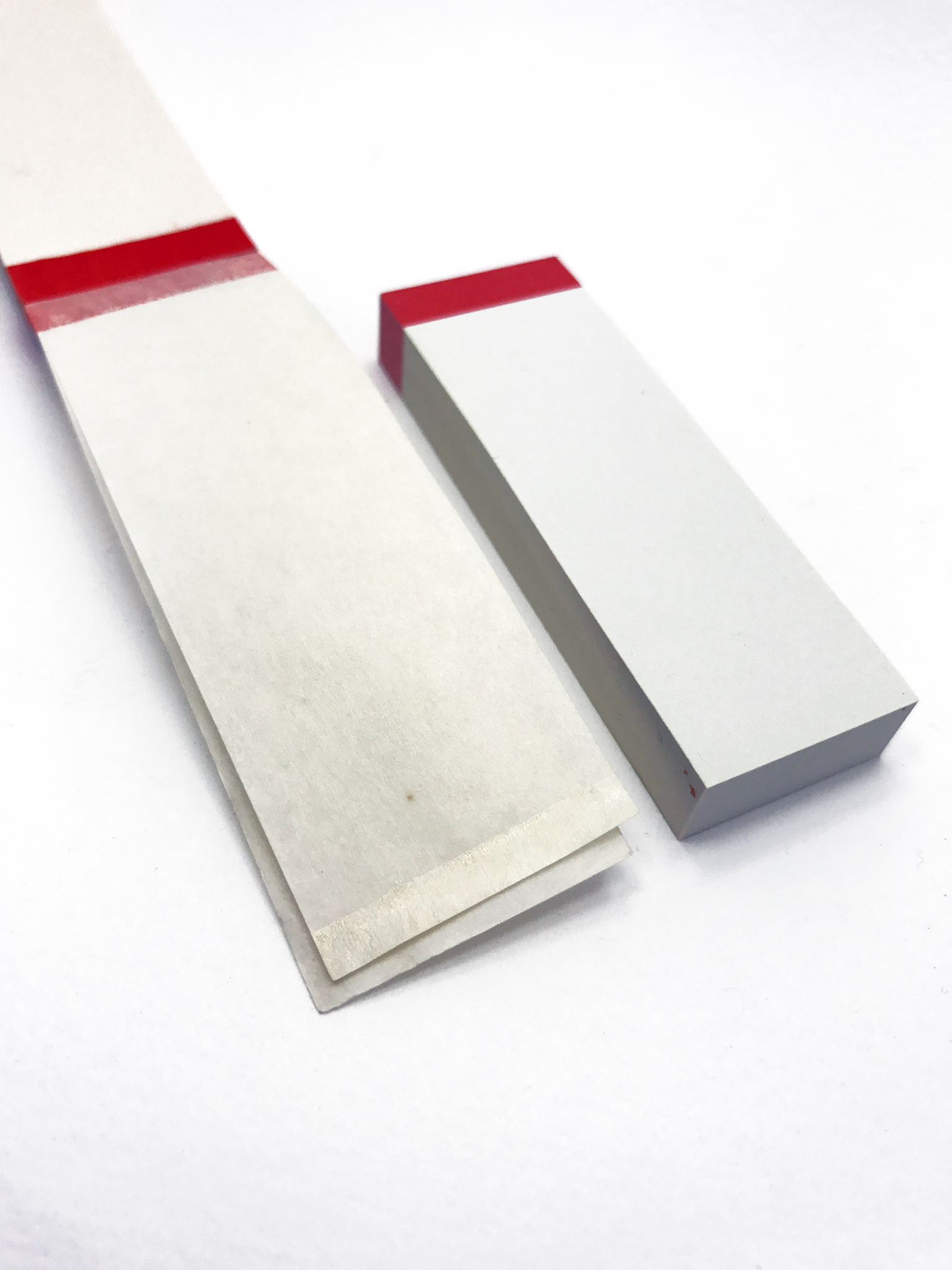 入手した付箋紙の裏側を見ると、紙の端にわずかに糊がついています。