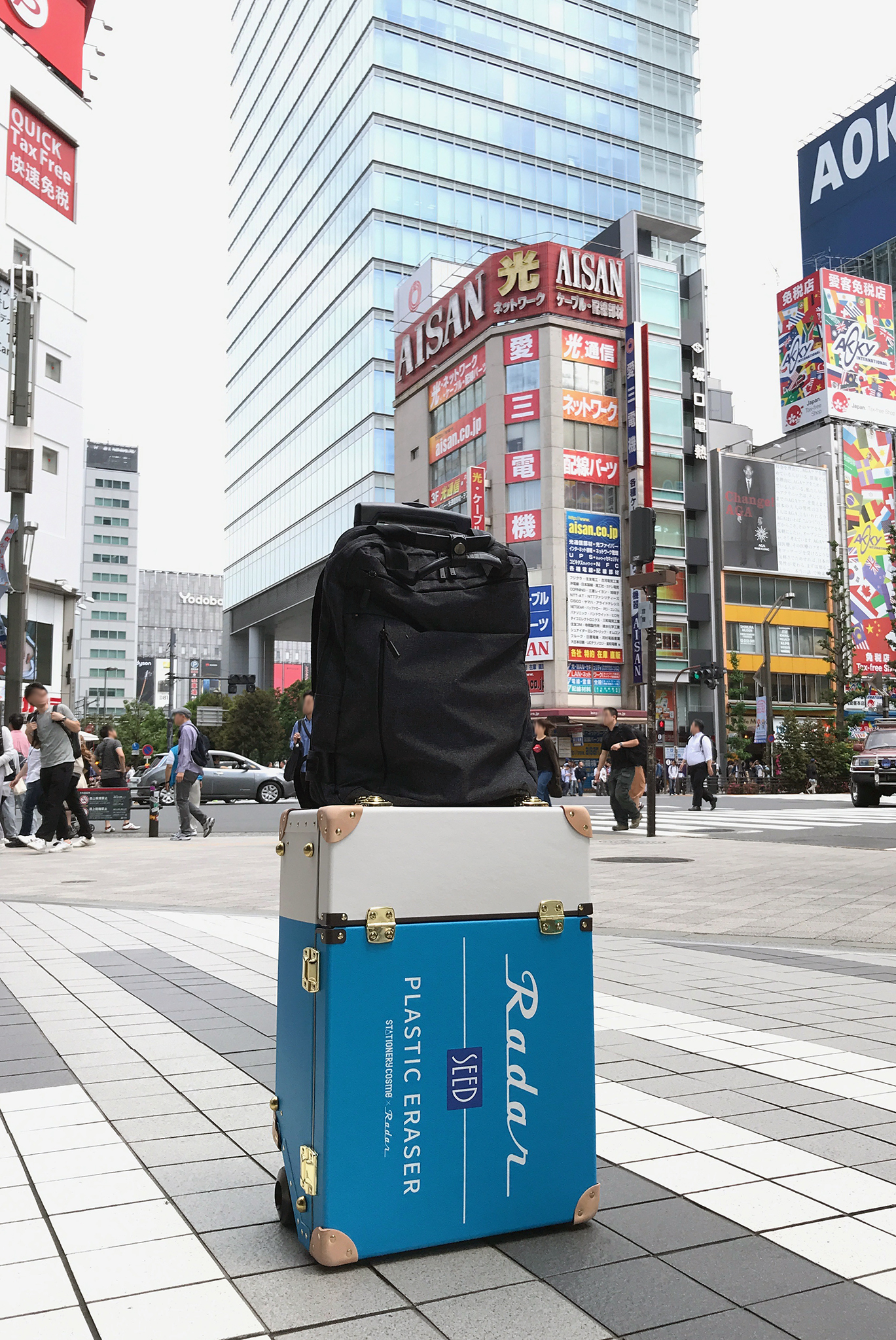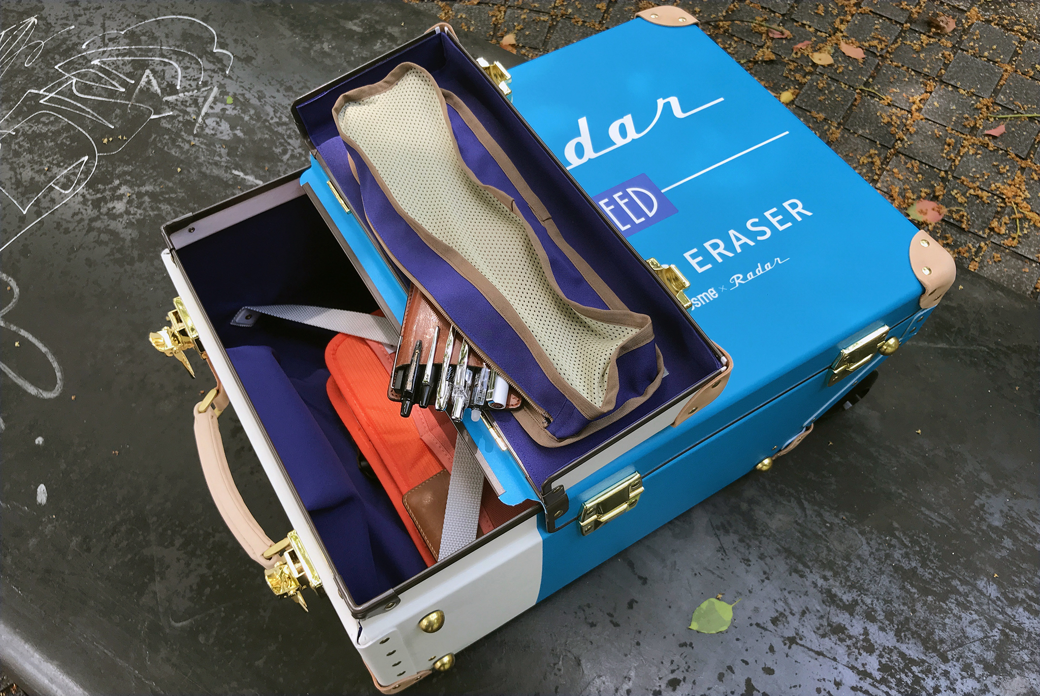 その会場で、レーダー(シードの消しゴム)柄とクーピーペンシル(サクラクレパスの全芯色鉛筆)柄のキャリーバッグが目撃されていました。