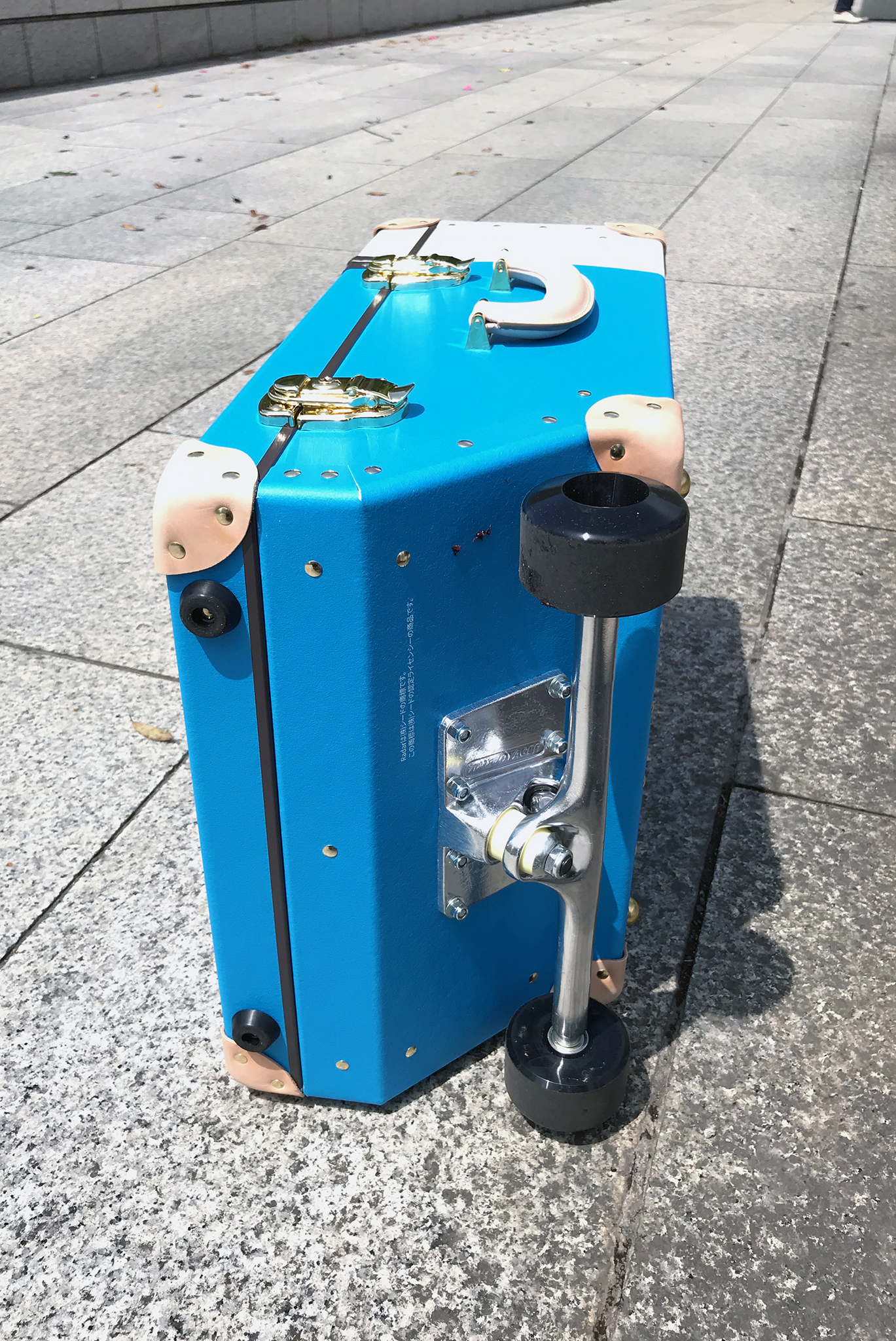 2輪タイプですが、スケートボードの車輪を使っているので頑丈で衝撃吸収性に優れ、実に快適な足回りを維持できます。